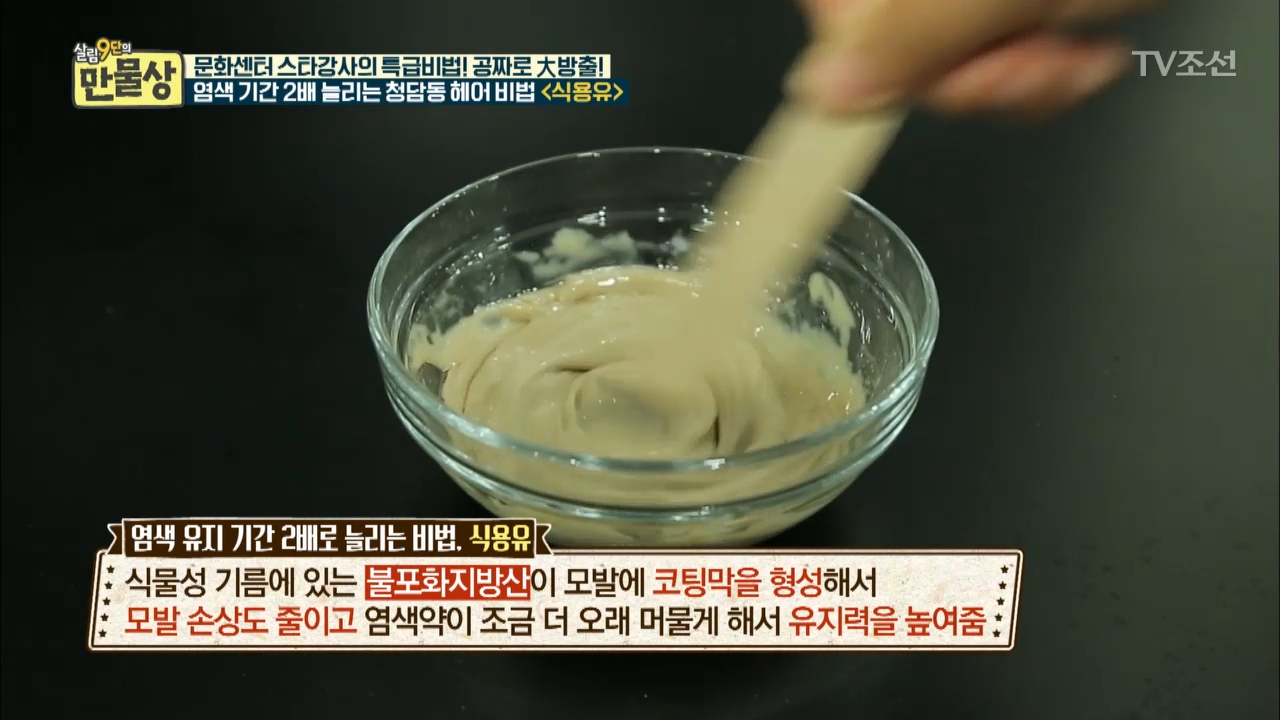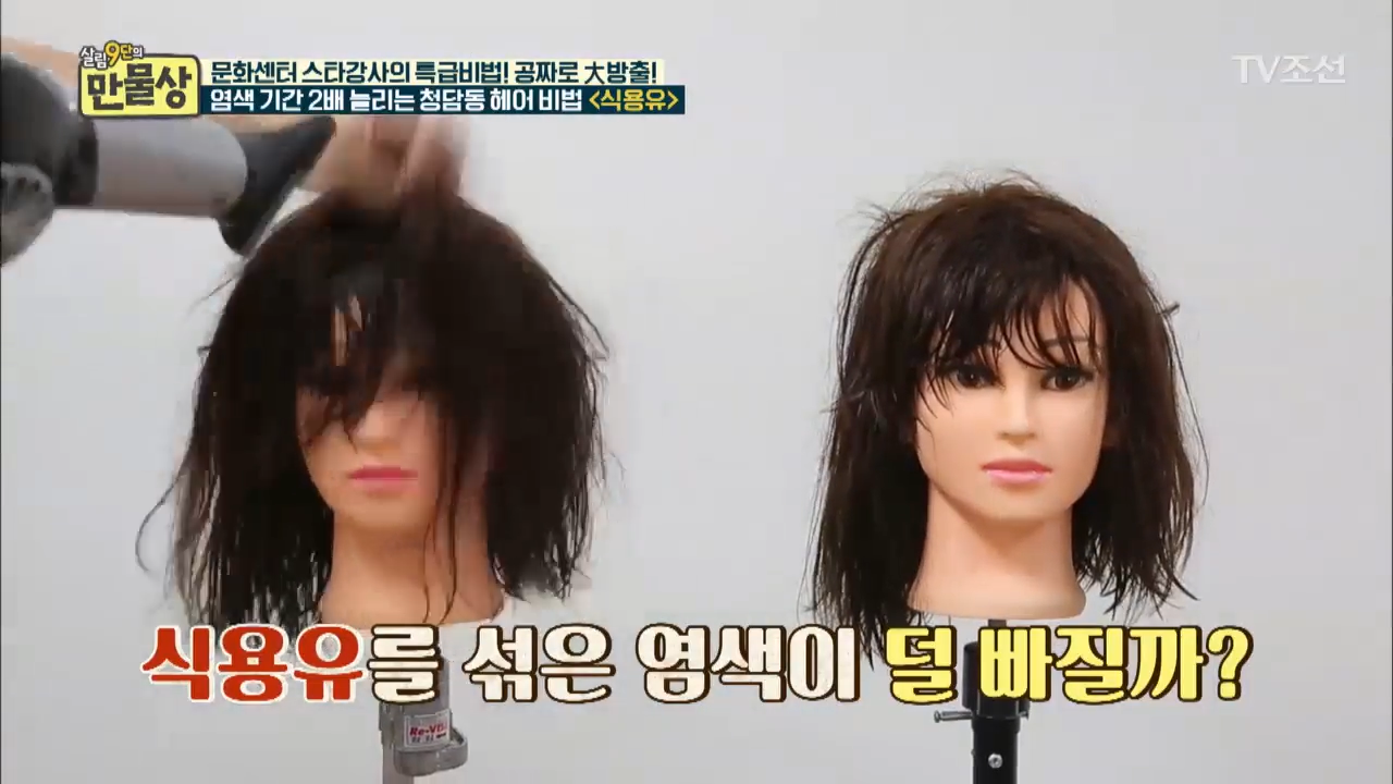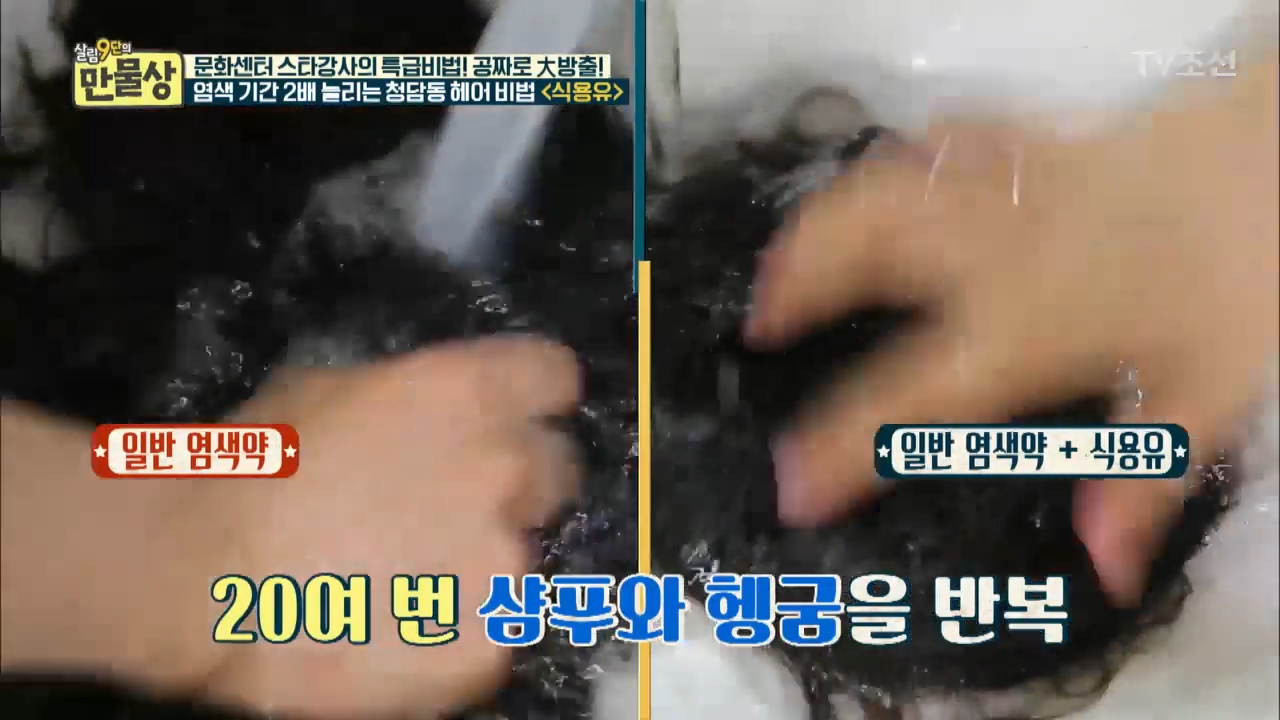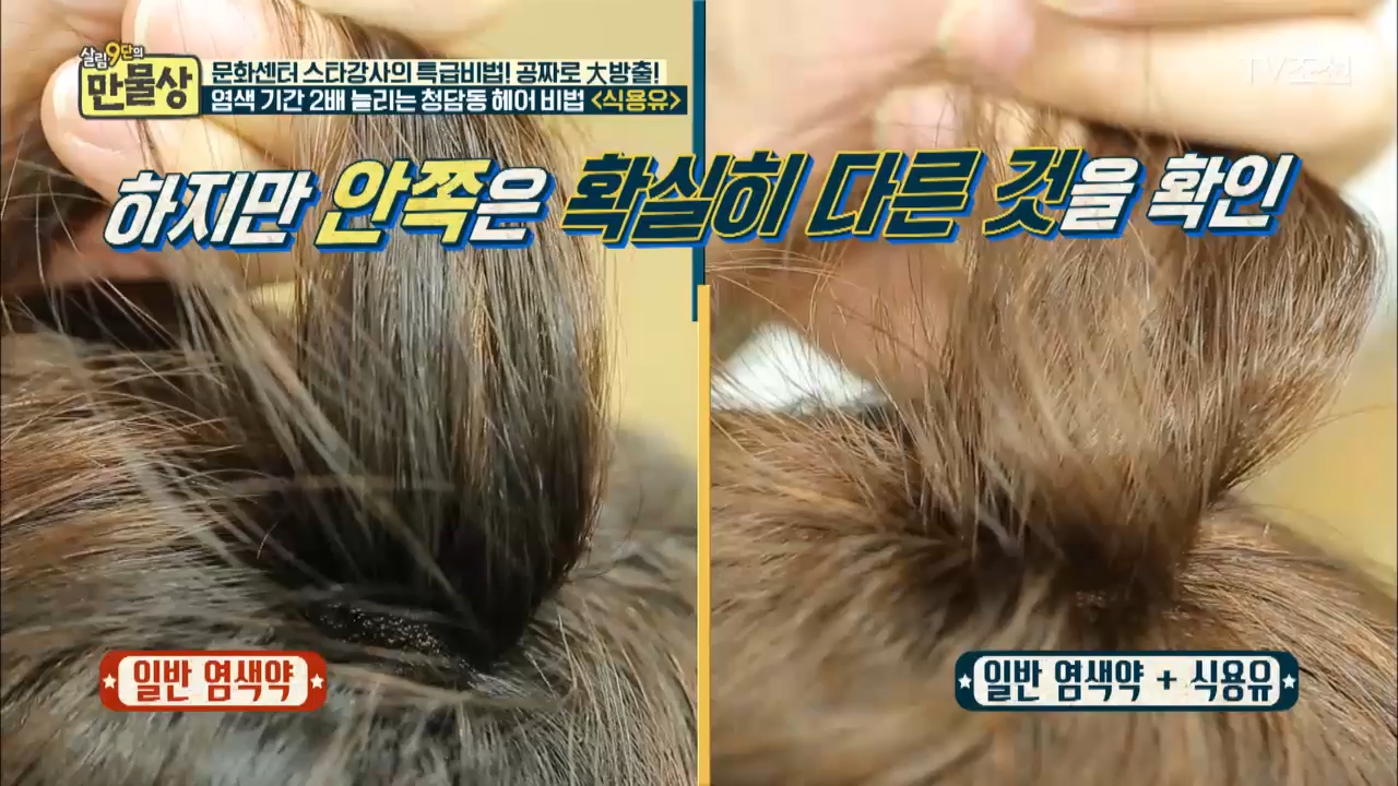 #염색 기간#살림 9단의만물상청담동염색#염색약에식용유#염색 기간2배 늘리는식용유#청담동헤어염색 비법#TV조선'살림9단의 만물상'