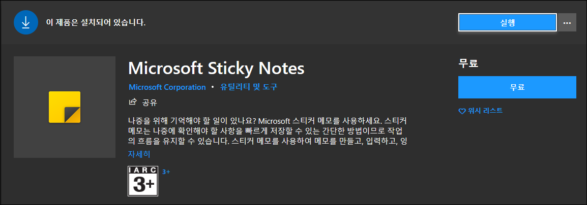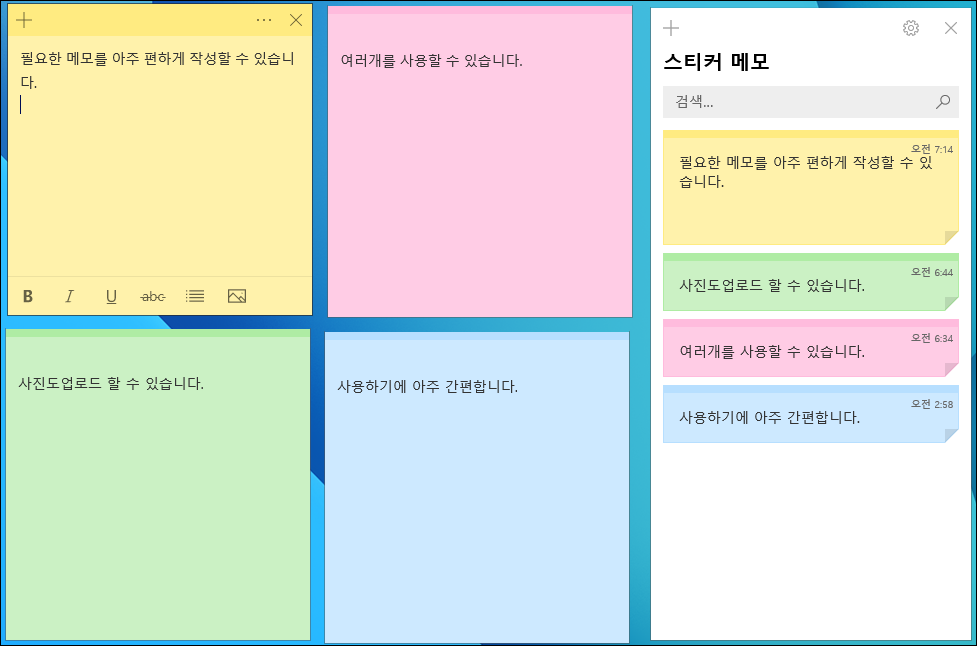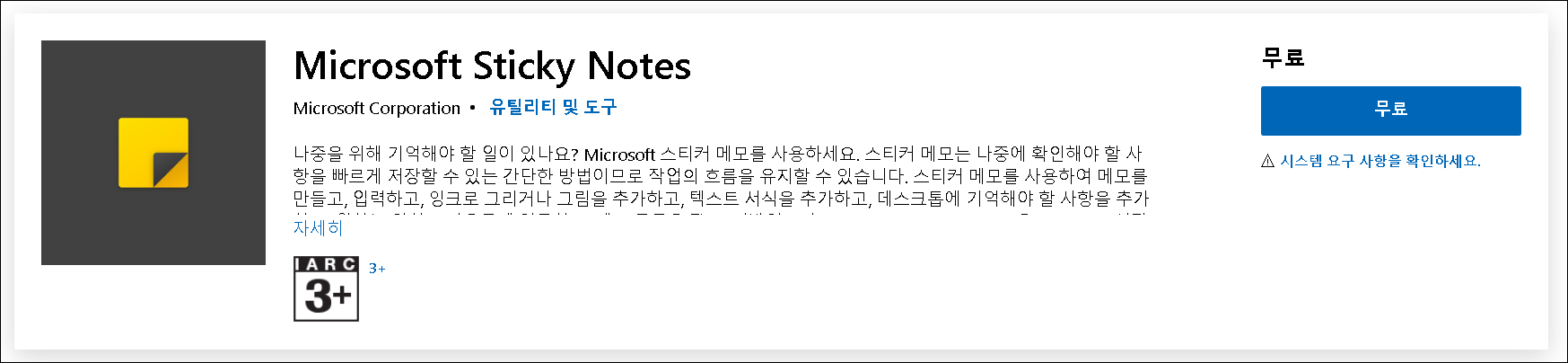 윈도우10 스티커 메모를 무료로 다운로드하여 설치하시면 됩니다.