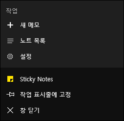 작업 줄 스티커 메모 아이콘 우측 마우스 클릭 '작업 표시줄에 고정' 클릭