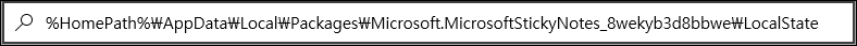 %HomePath%\AppData\Local\Packages\Microsoft.MicrosoftStickyNotes_8wekyb3d8bbwe\LocalState