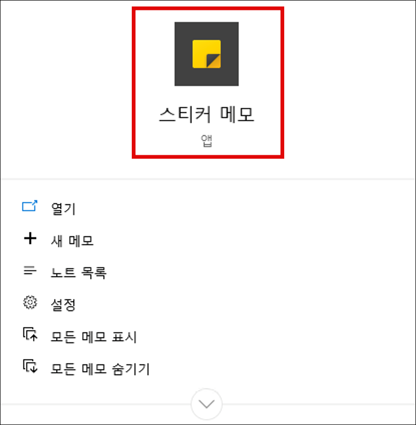 스티커 메모 앱이 컴퓨터에 설치되어 있다면 둘 중에 한 가지로 검색이 될 것입니다.