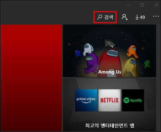 스토어가 실행되면 화면의 우측 상단에 검색을 클릭합니다.