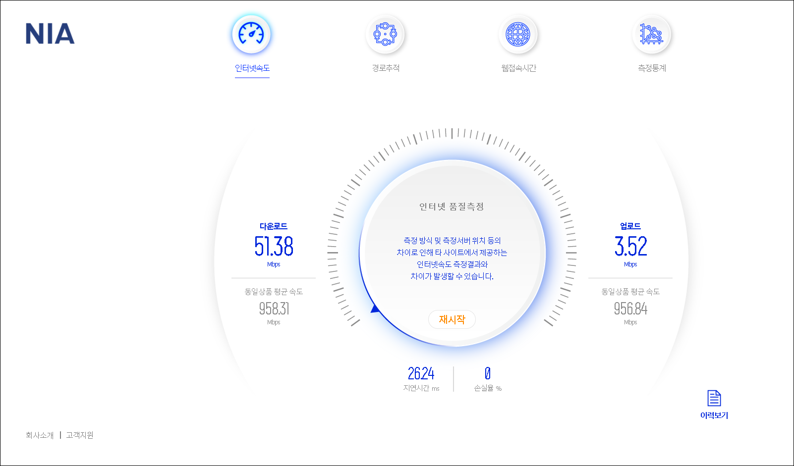 쉽고 간단하게 인터넷 속도를 측정을 할 수 있기 때문에 궁금하거나 필요할 때마다 한 번씩 체크를 해주면 인터넷 속도 때문에 발생하는 문제 해결에 조금이나마 도움이 될 것이라고 생각합니다. 이상으로 사이트를 이용해 인터넷 속도를 측정 방법에 대해 알아보았습니다.