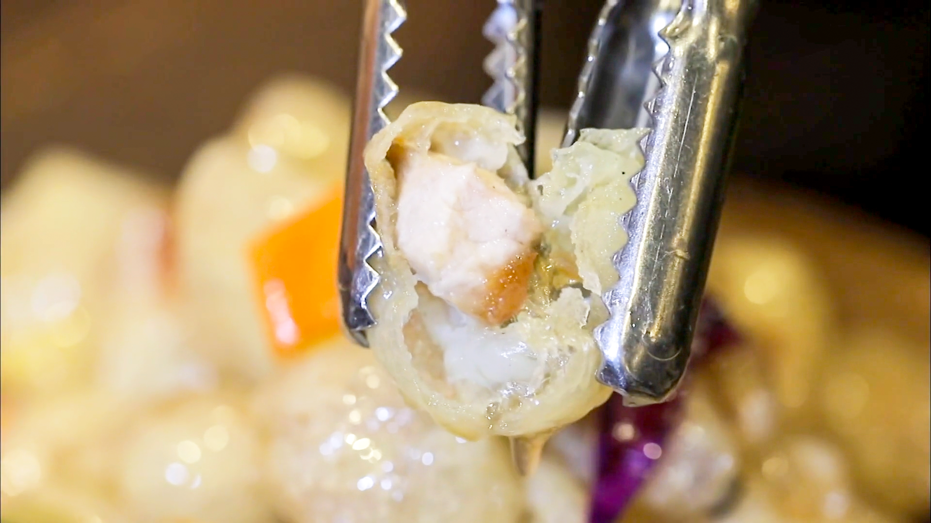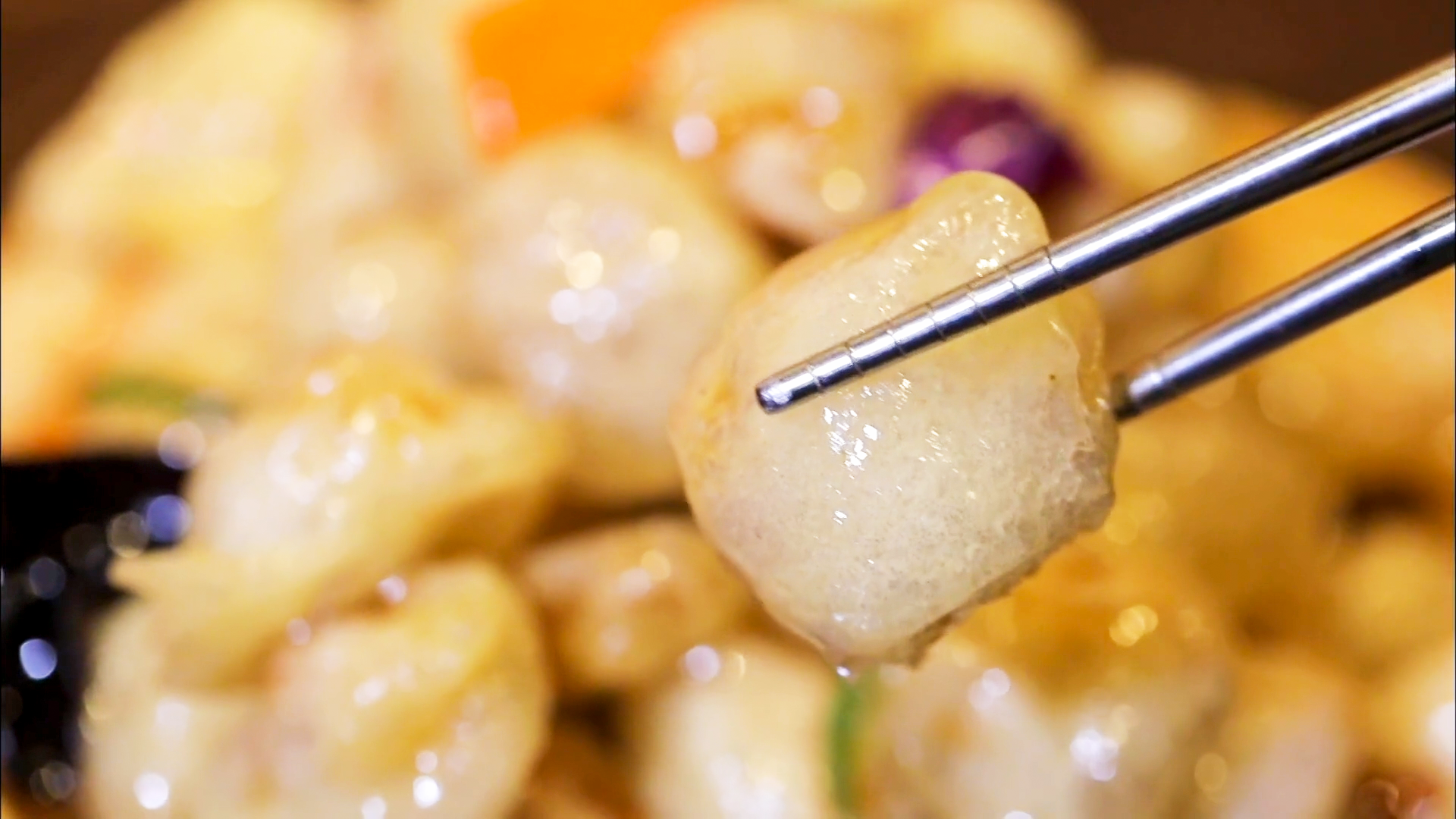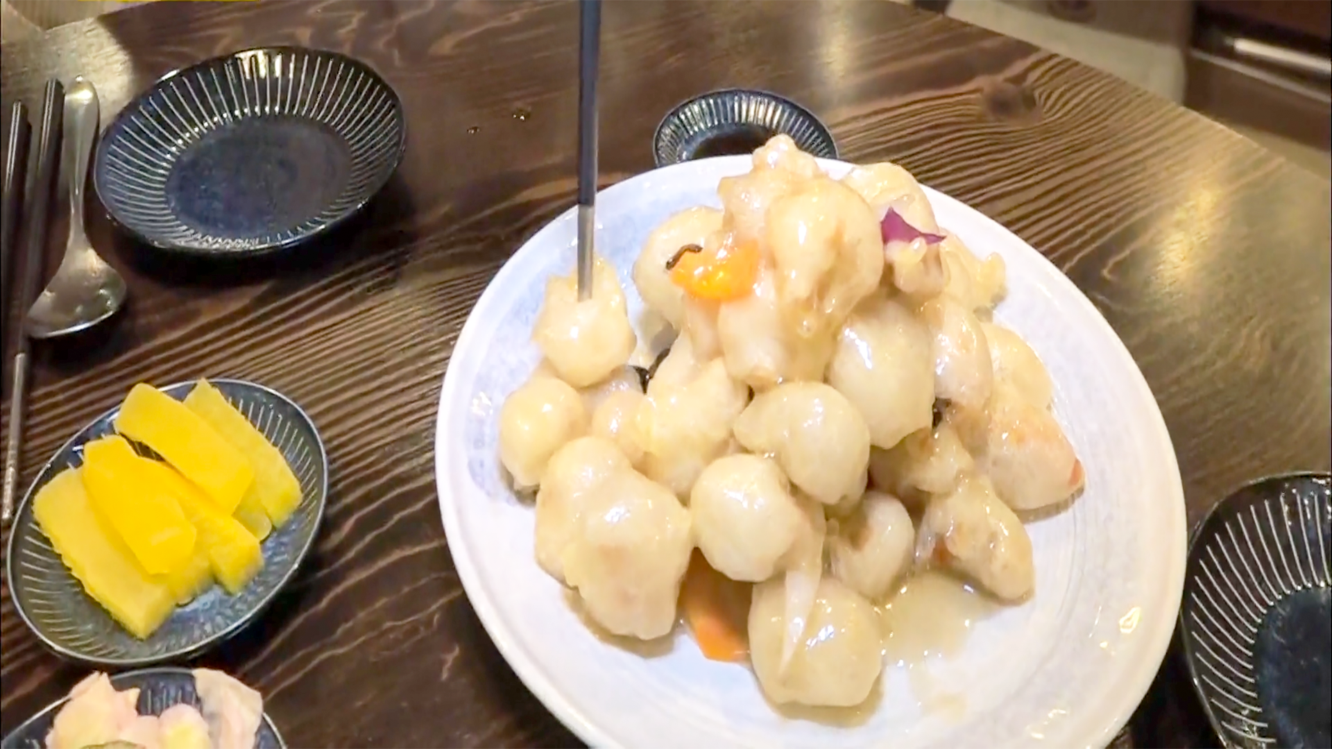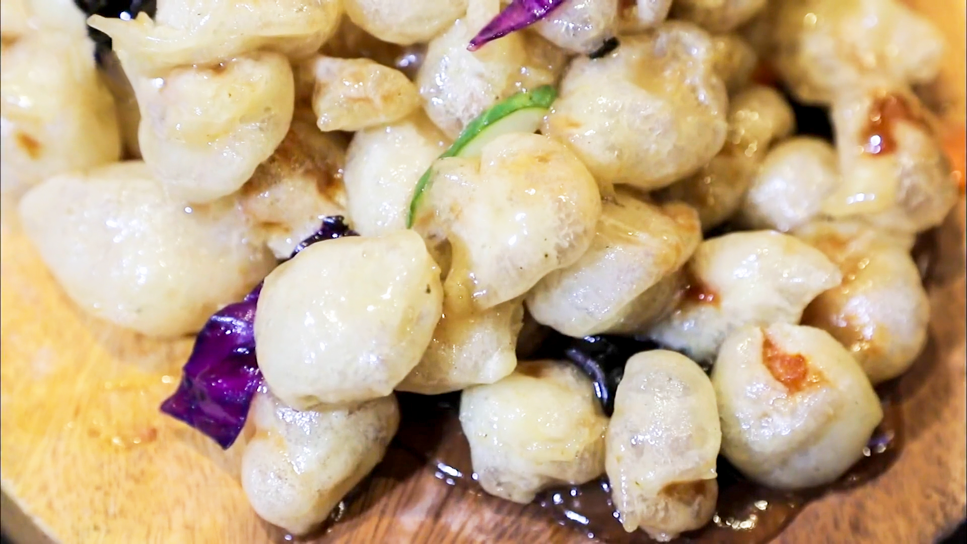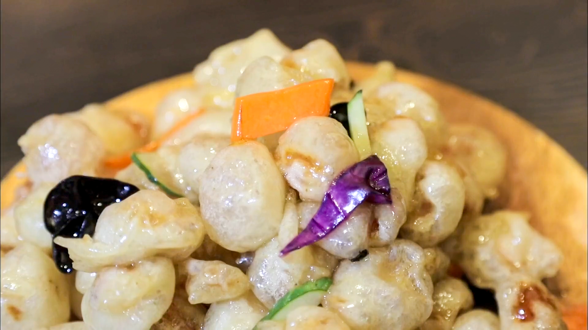 일반 탕수육과는 완전히 다른 새알처럼 특이한 모양의 탕수육이 겉은 바삭하고 속은 촉촉해 맛이 아주 좋습니다.