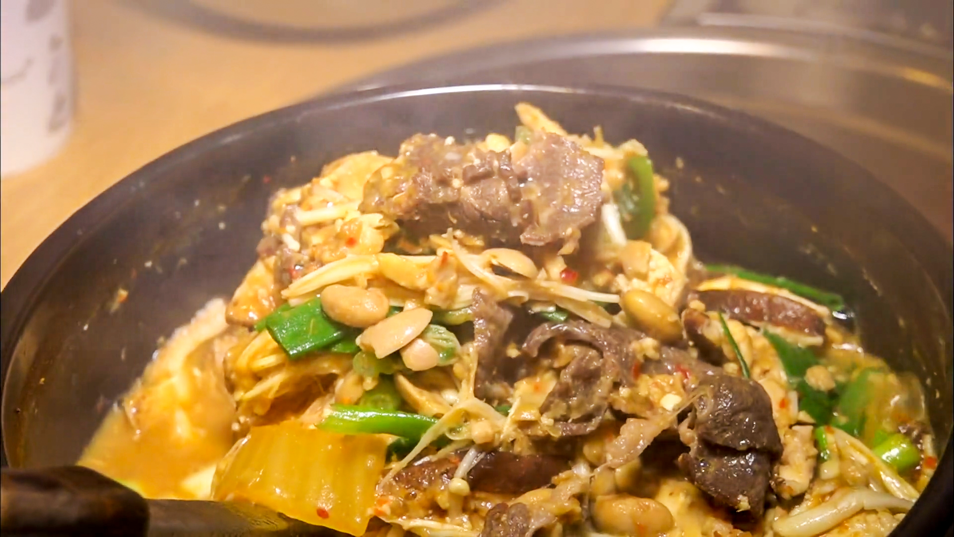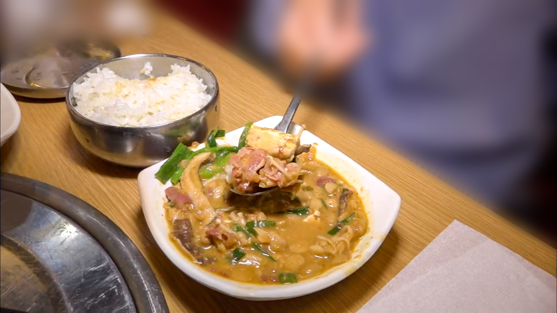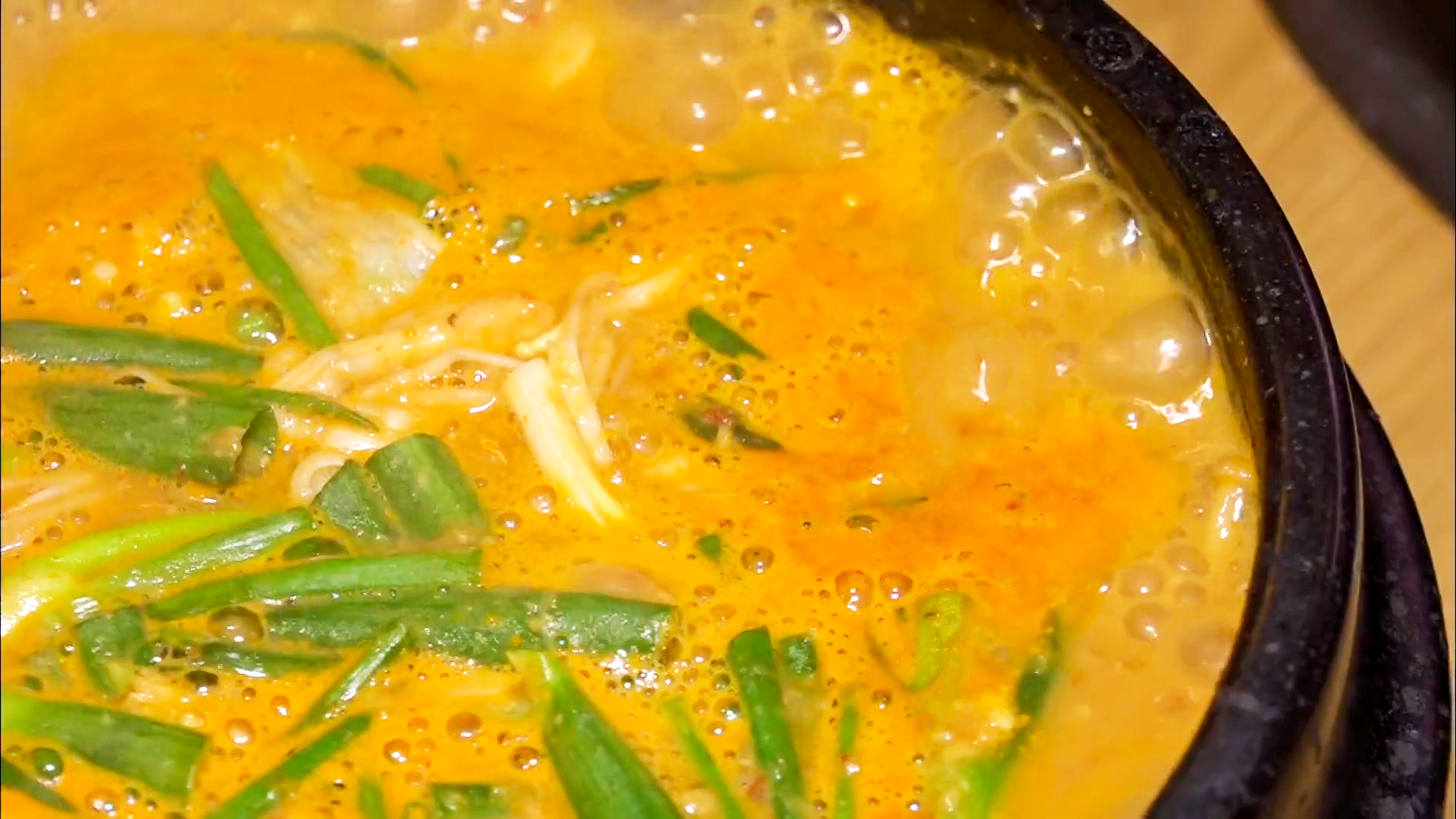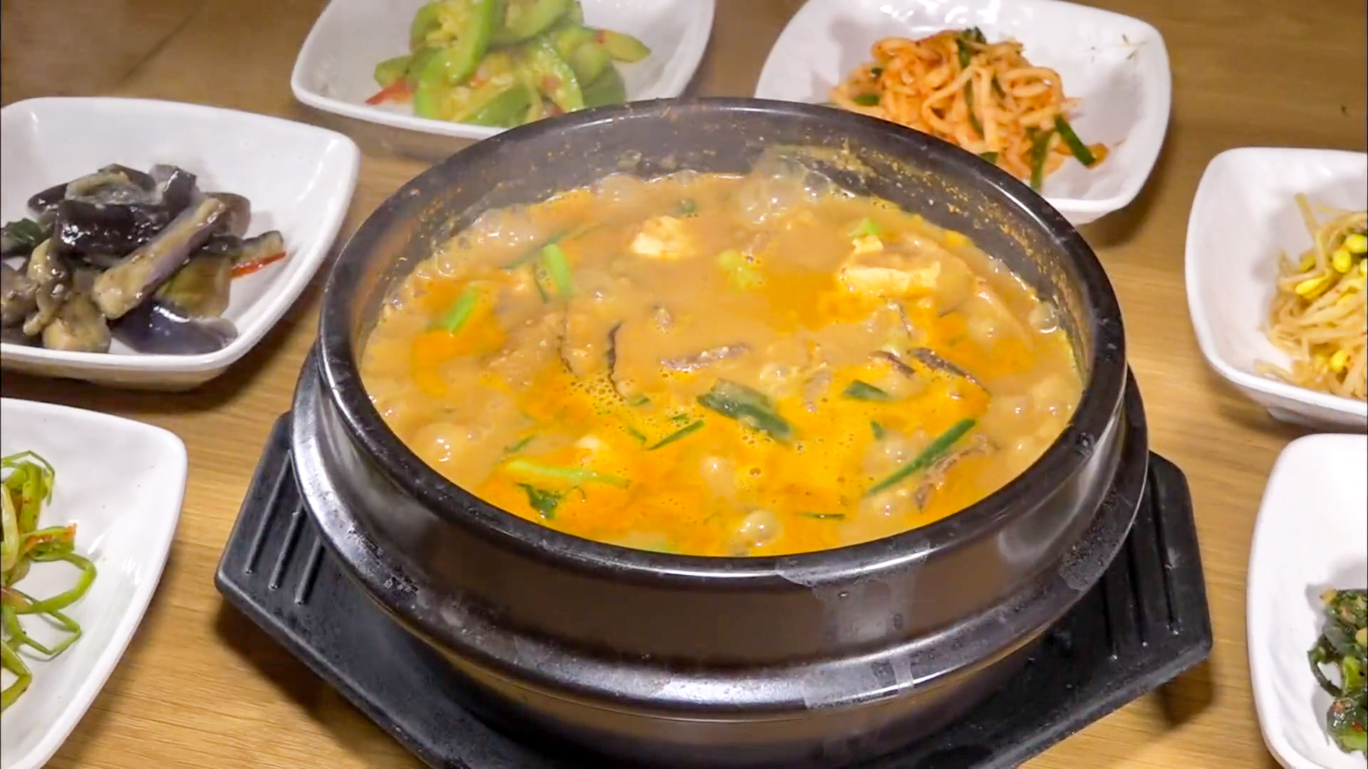 이 집의 대표 메뉴 한우 청국장입니다. 진하고 고소한 청국장의 제대로 된 맛을 느낄 수 있습니다.