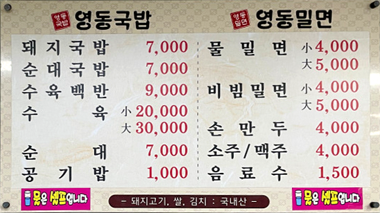※돼지국밥, 밀면이 주된 메뉴이며 메뉴와 가격은 음식점 사정에 따라 변경될 수 있습니다.