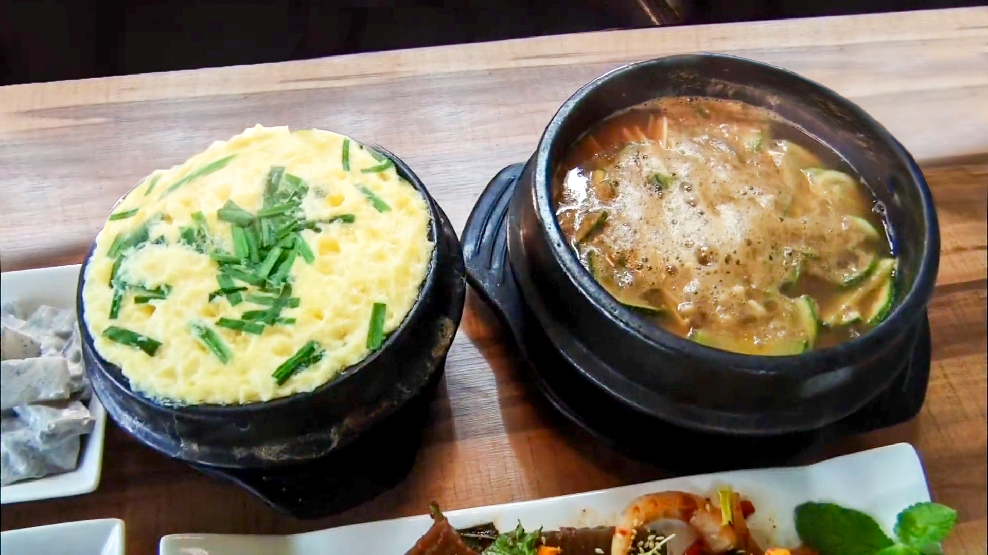 고소하고 구수한 달걀찜과 된장찌개입니다.