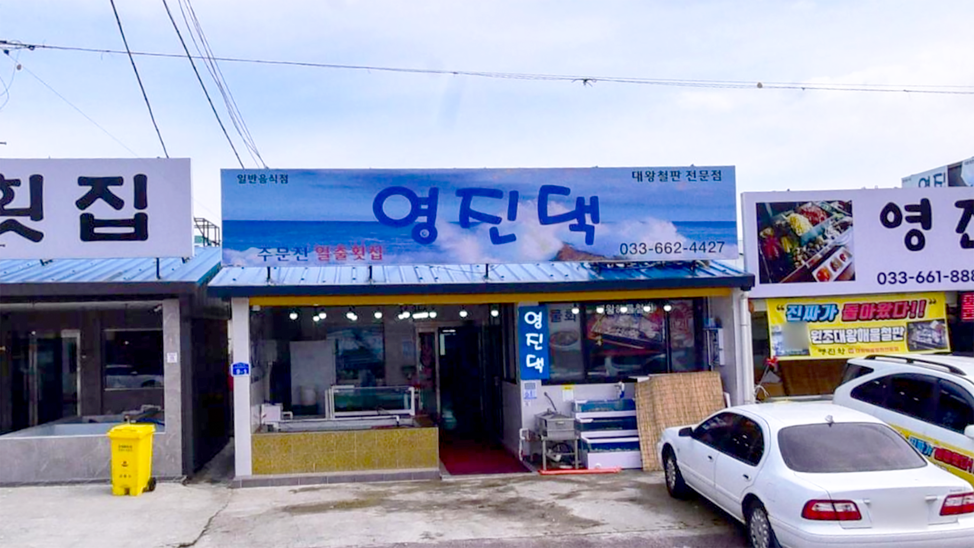 강릉 맛집 (주문진 맛집) '영진댁'의 입구입니다. 주차는 가게 앞에 주차할 수 있으며 음식점 뒤편에도 넓은 주자창이 마려되어 있어 편하게 주차할 수 있습니다.