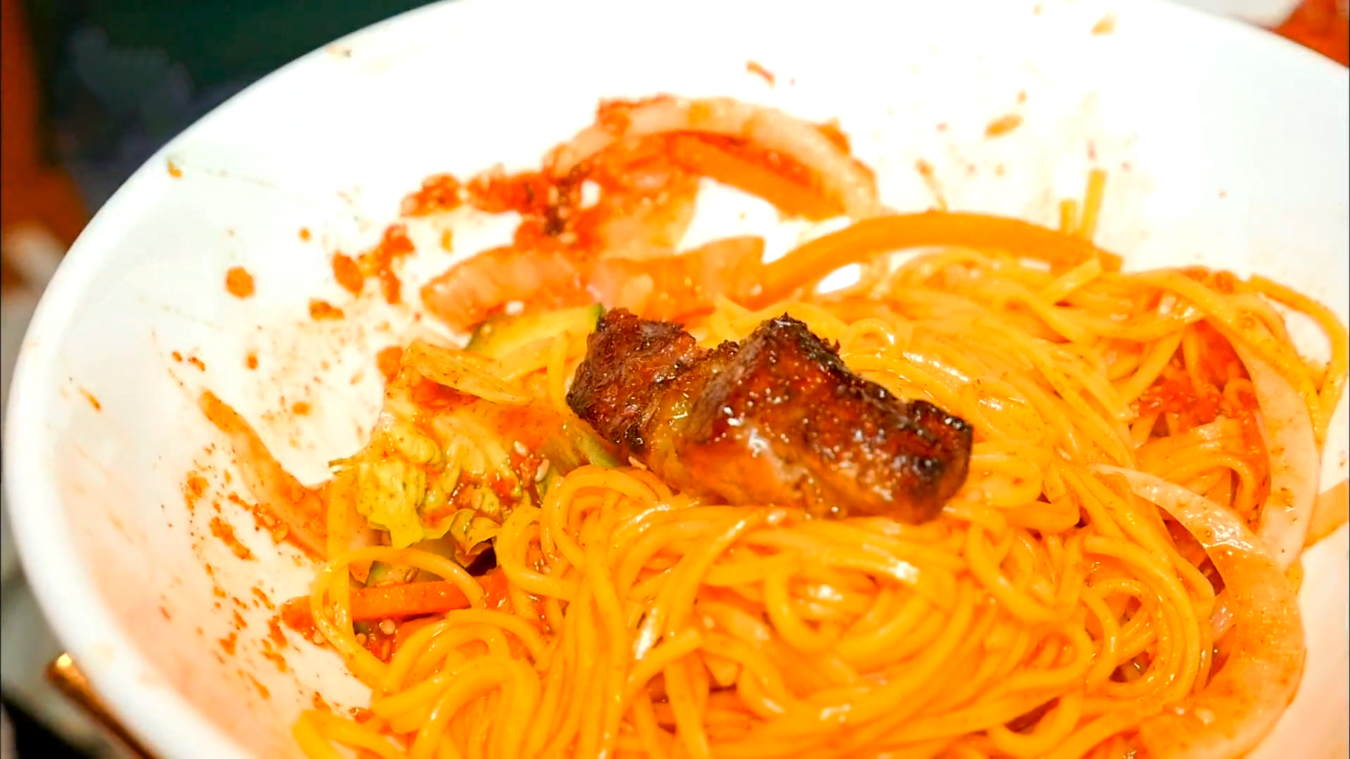 등갈비를 비빔국수에 말아먹으면 완전 꿀맛입니다.