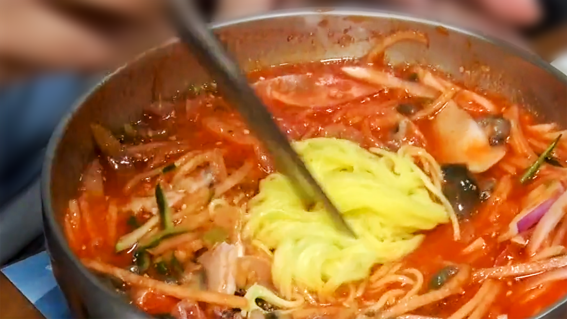 소면을 넣고 슥슥 비벼주면 물회 국수가 됩니다.