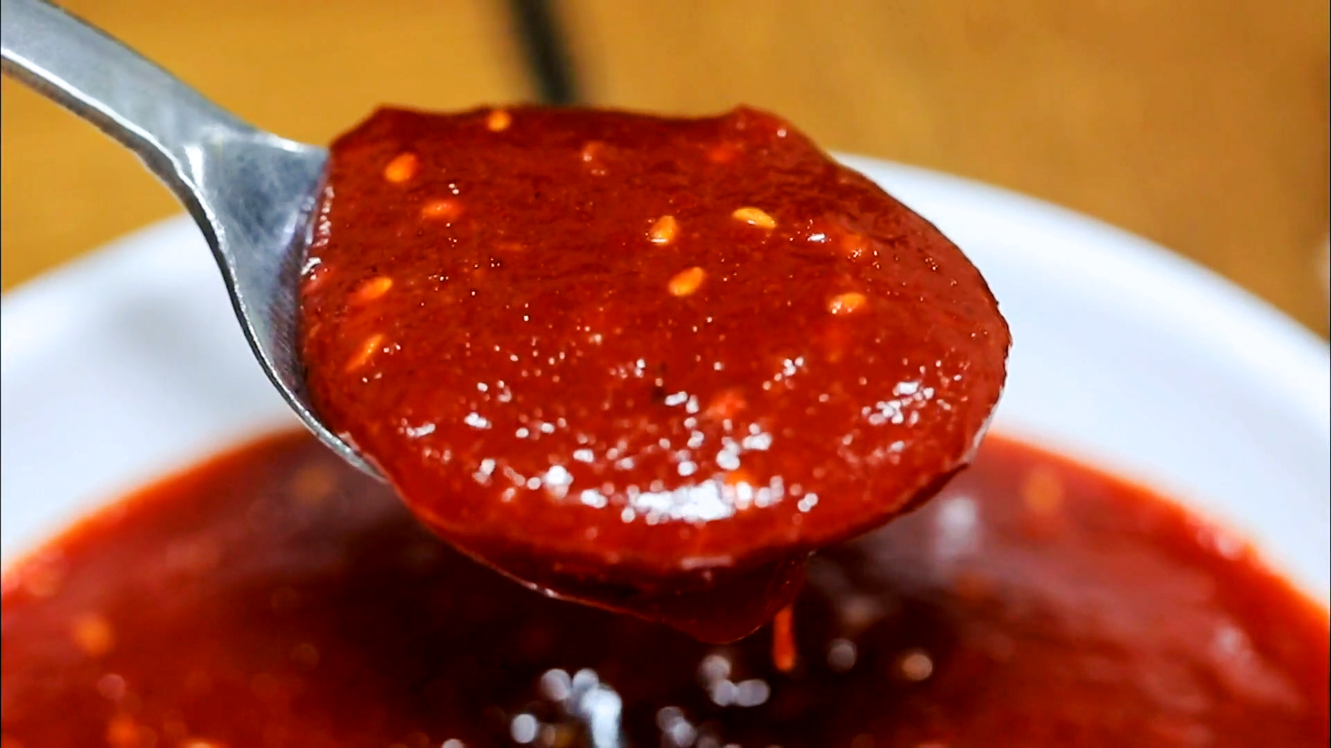 살얼음 대신 빨간 고추장을 넣고 비벼 먹습니다.