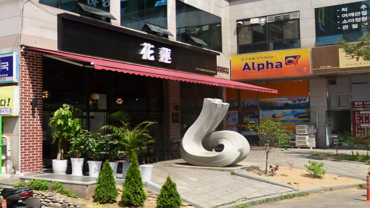 안산 맛집 '화련'의 외관입니다. 중앙역 1번 출구에서 도보로 약 15분, 고잔역 1번 출구에서 도보로 약 18분 정도 걸리는 거리에 있으며 바로 앞에 넓은 주차장이 있어 편하게 주차할 수 있습니다.