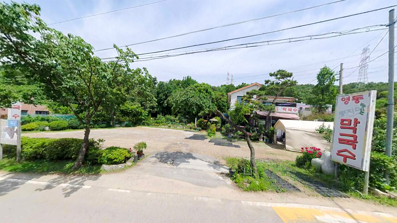 고양시 맛집 '영동동치미막국수'입구입니다. 넓은 주차장이 완비되어 있어 편하게 주차할 수 있습니다.