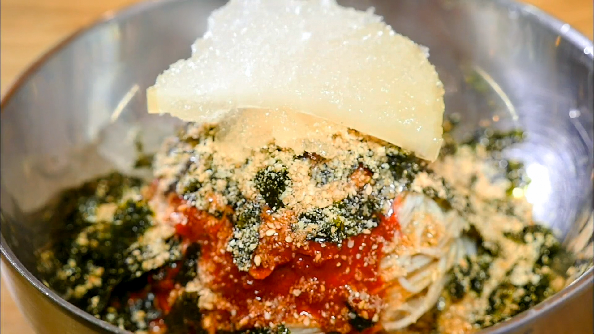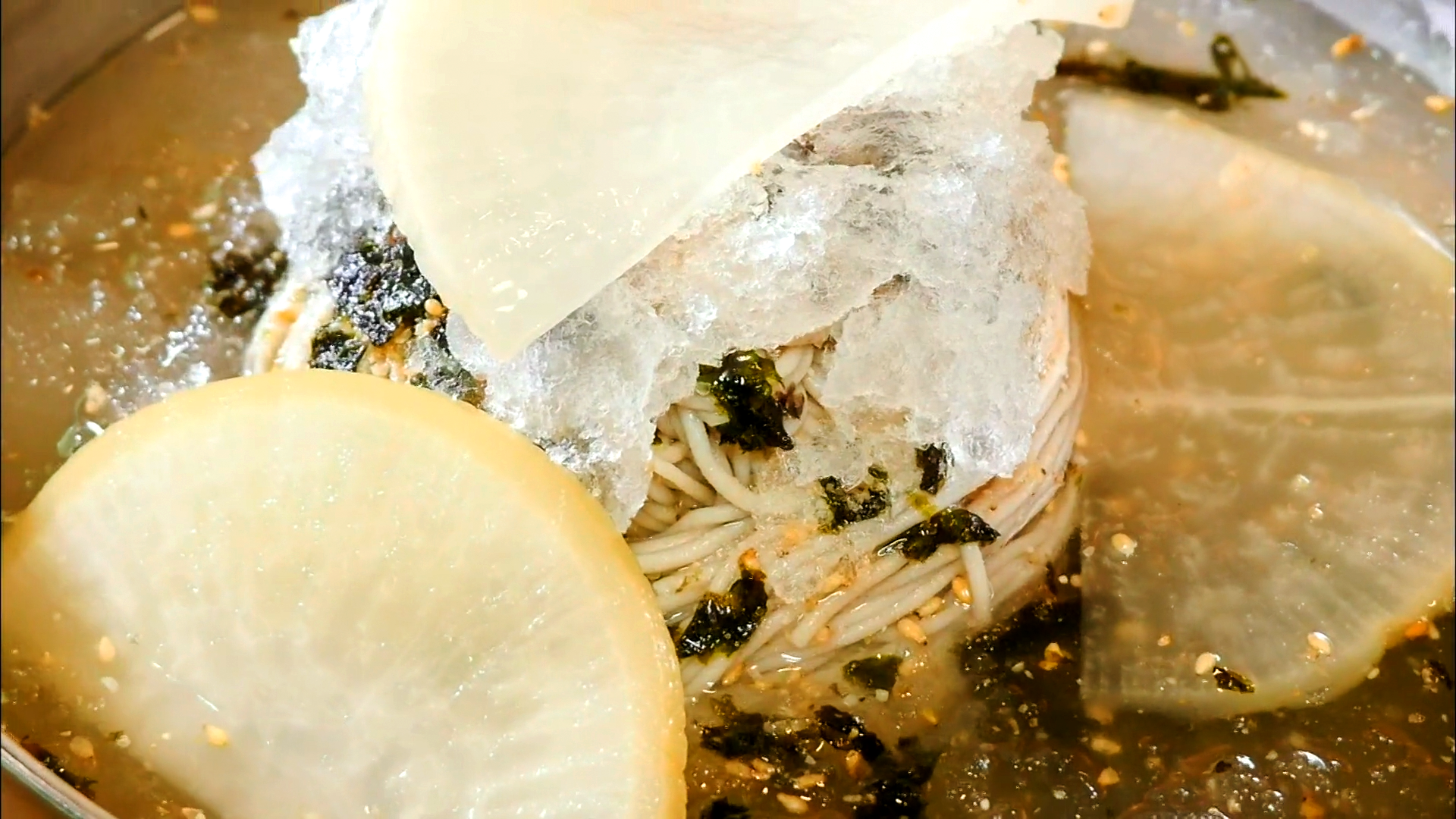 이 집의 대표 메뉴 동치미 막국수입니다. 보기만 해도 맛있는 동치미를 막국수 듬뿍 넣어줍니다.
