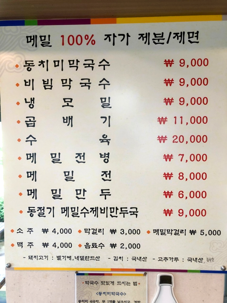 간이 세지 않고 고기육수가 들어간 막국수보다 훨씬 시원하면서 구수하고 슴슴한 맛이 아주 훌륭합니다. 동치미와 막국수의 궁합이 아주 좋으며 동치미 메밀 막국수뿐만 아니라 여러 가지 메밀요리를 맛볼 수 있습니다. 대자동 근처로 갈 일 있을 때 들리면 담백한 막국수를 맛있게 즐길 수 있을 것입니다.