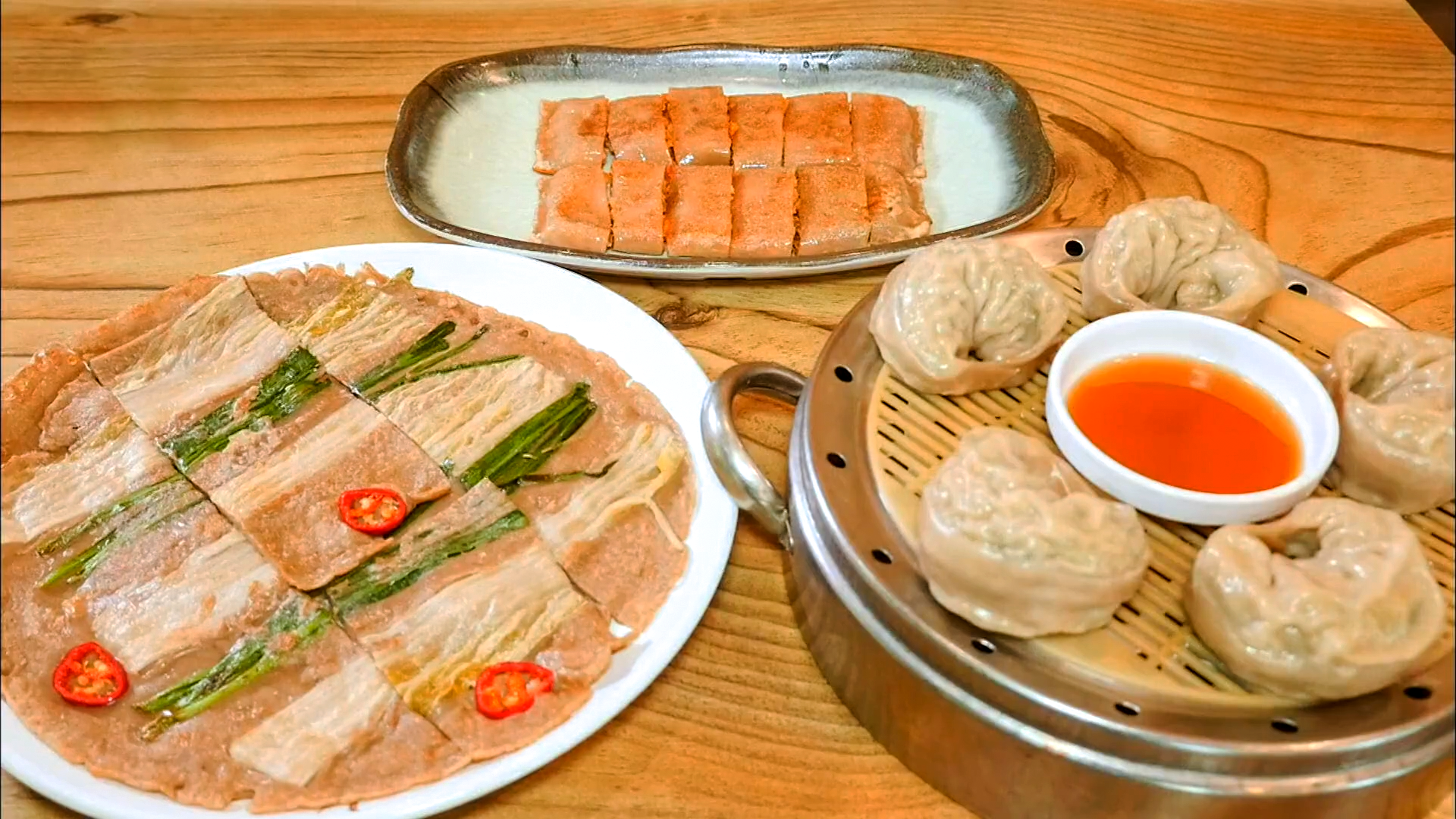 메밀전, 메밀 왕만두, 메밀전병입니다.