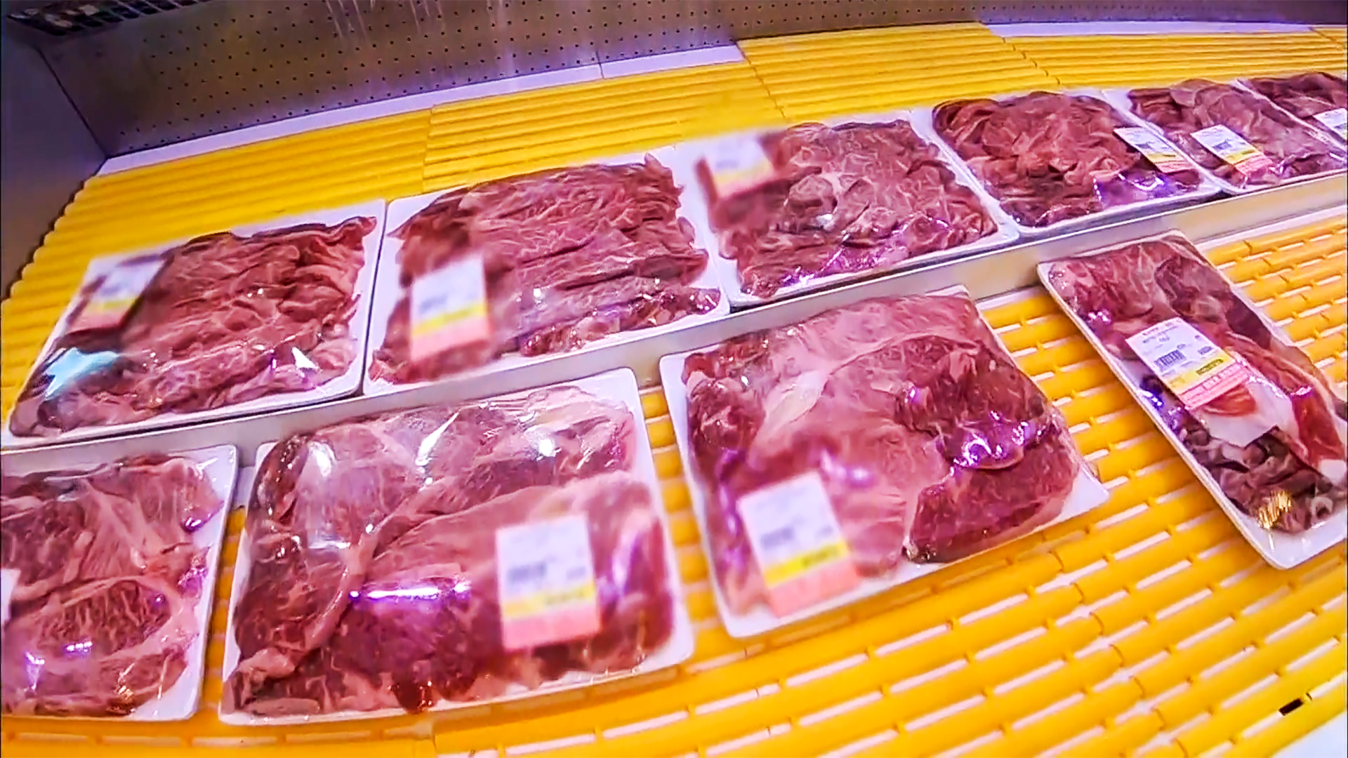 냉장고에 다양한 부위의 고기들이 진열되어 있습니다. 고기의 색깔이나 상태가 최상급 고기만 있는 것 같습니다. 먹고 싶은 고기를 골라 구입하면 됩니다.