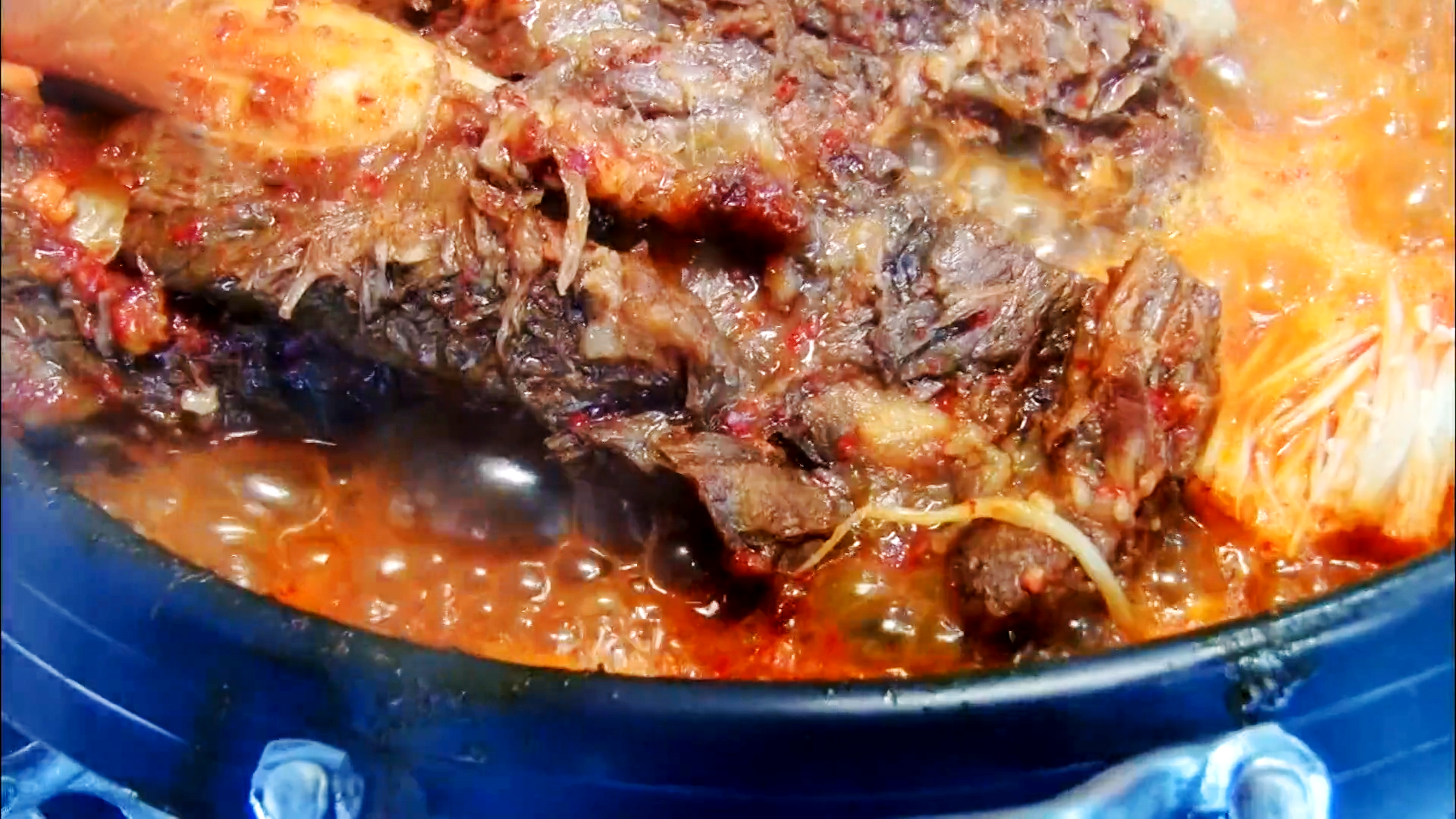 푹 익혀 살짝만 잡아당겨도 쏙~빠질 정도로 살코기가 부드러우며 씹는 식감이 좋습니다.