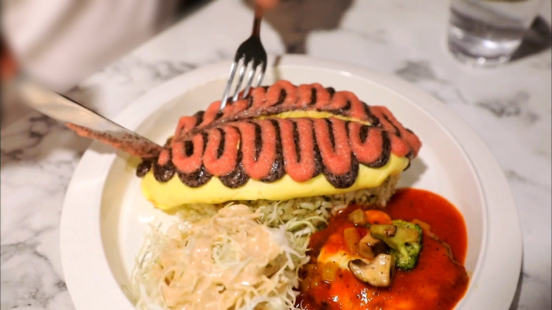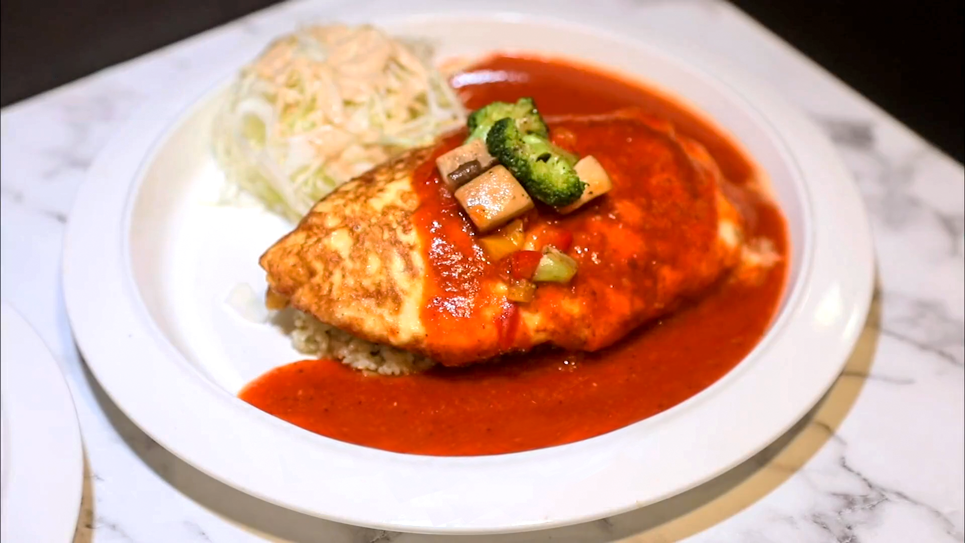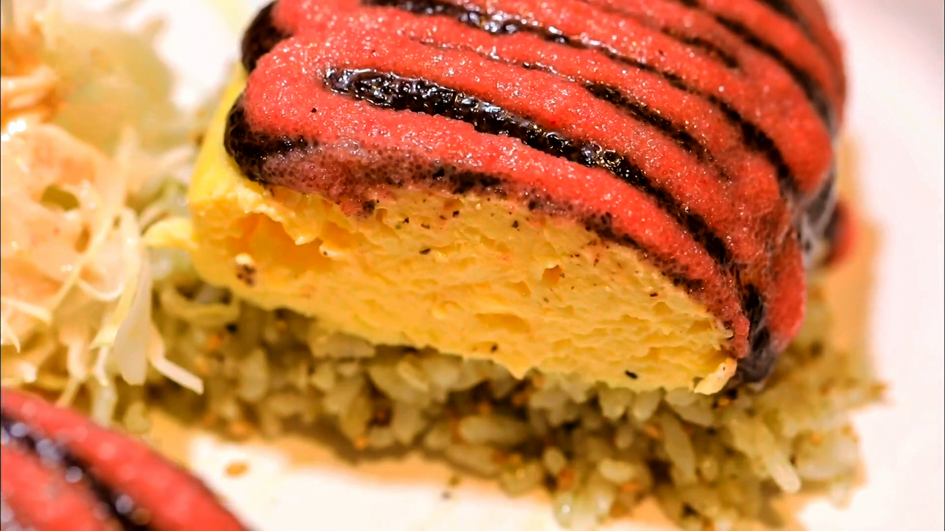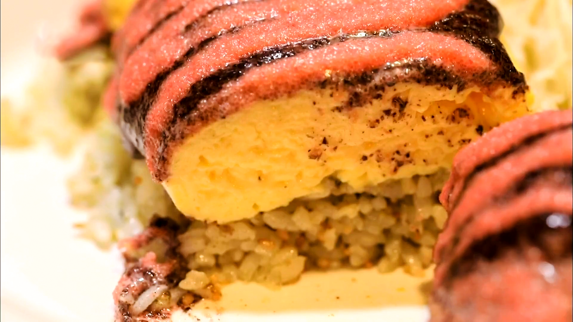 달걀이 상당히 두껍지만 아주 촉촉하고 부드럽습니다.
