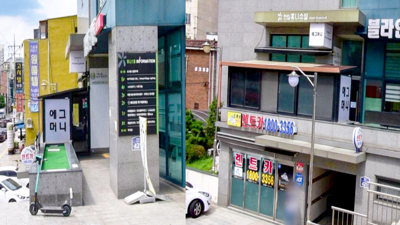 노원 맛집(태릉 맛집) '에그머니'입구입니다. 태릉입구역 1번 출구에서 도보로 약 1~3분 거리에 있으며 조금만 걸으면 바로 찾을 수 있습니다. 자차를 이용할 경우 건물 지하 1층에 주차가 가능합니다.