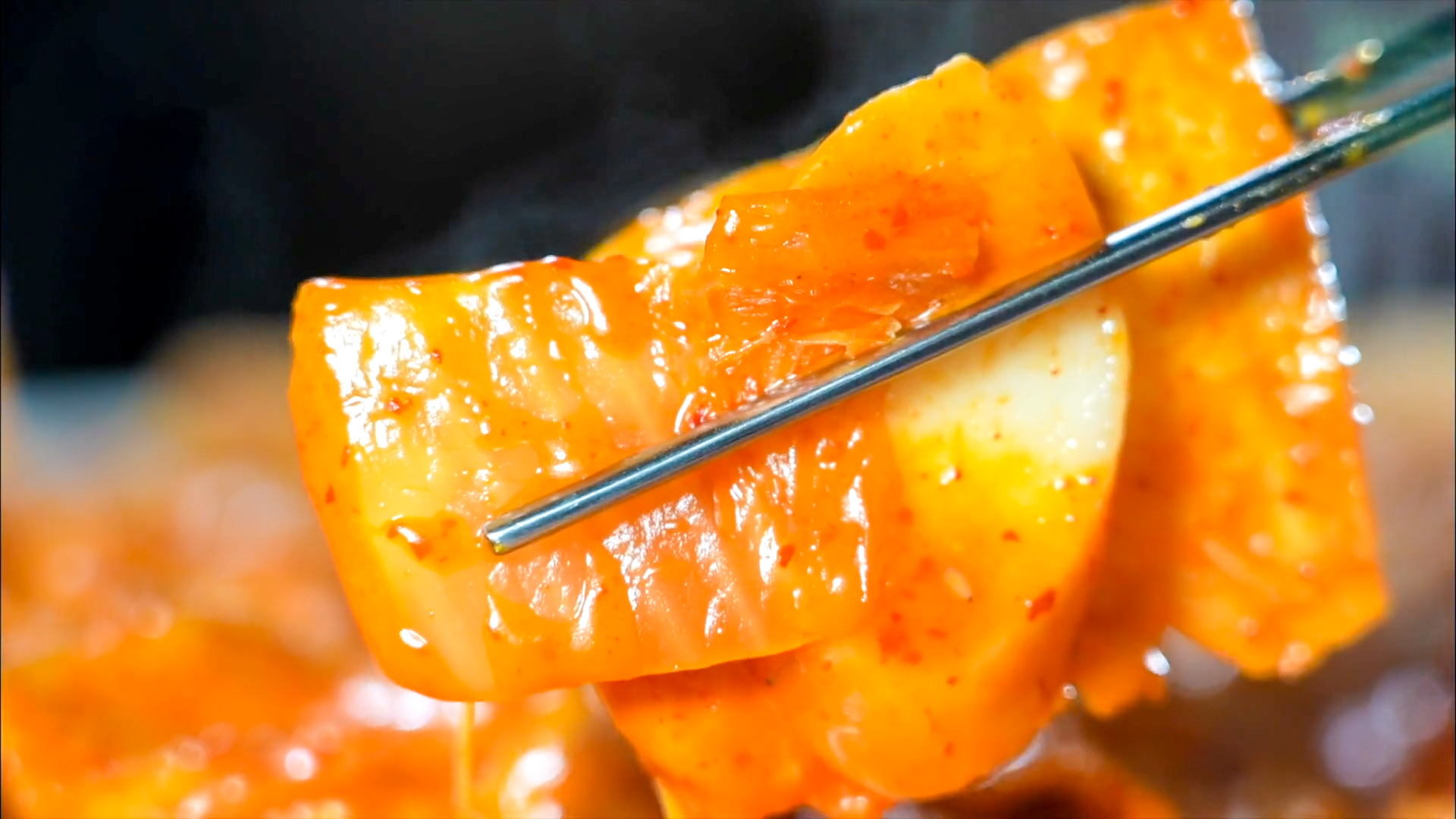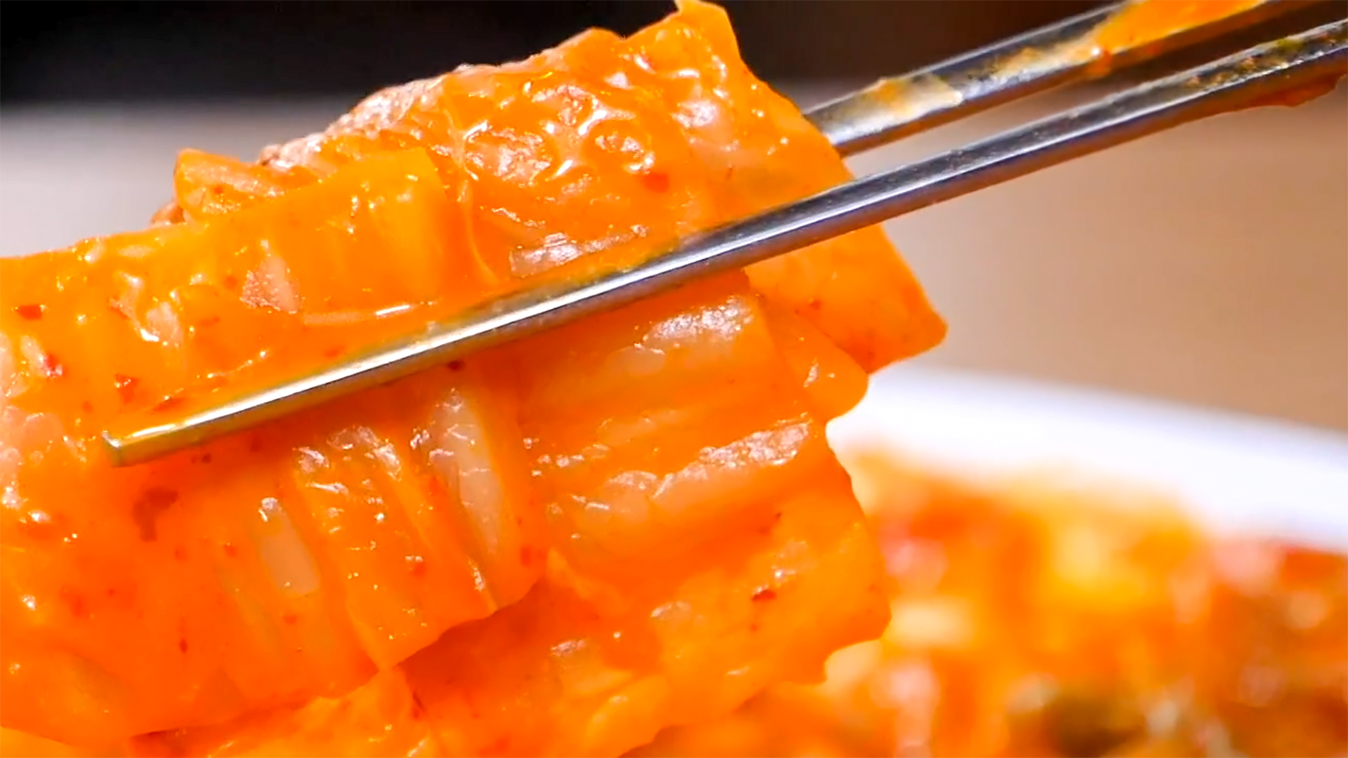 떡과 김치의 조합이 입맛을 계속 당기게 해 완전 찰떡궁합을 이룹니다.