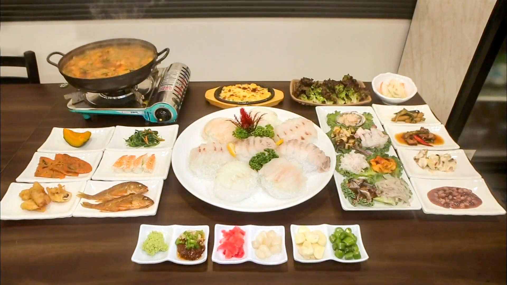 이 집의 대표 메뉴 자연산 모둠회 한상입니다.