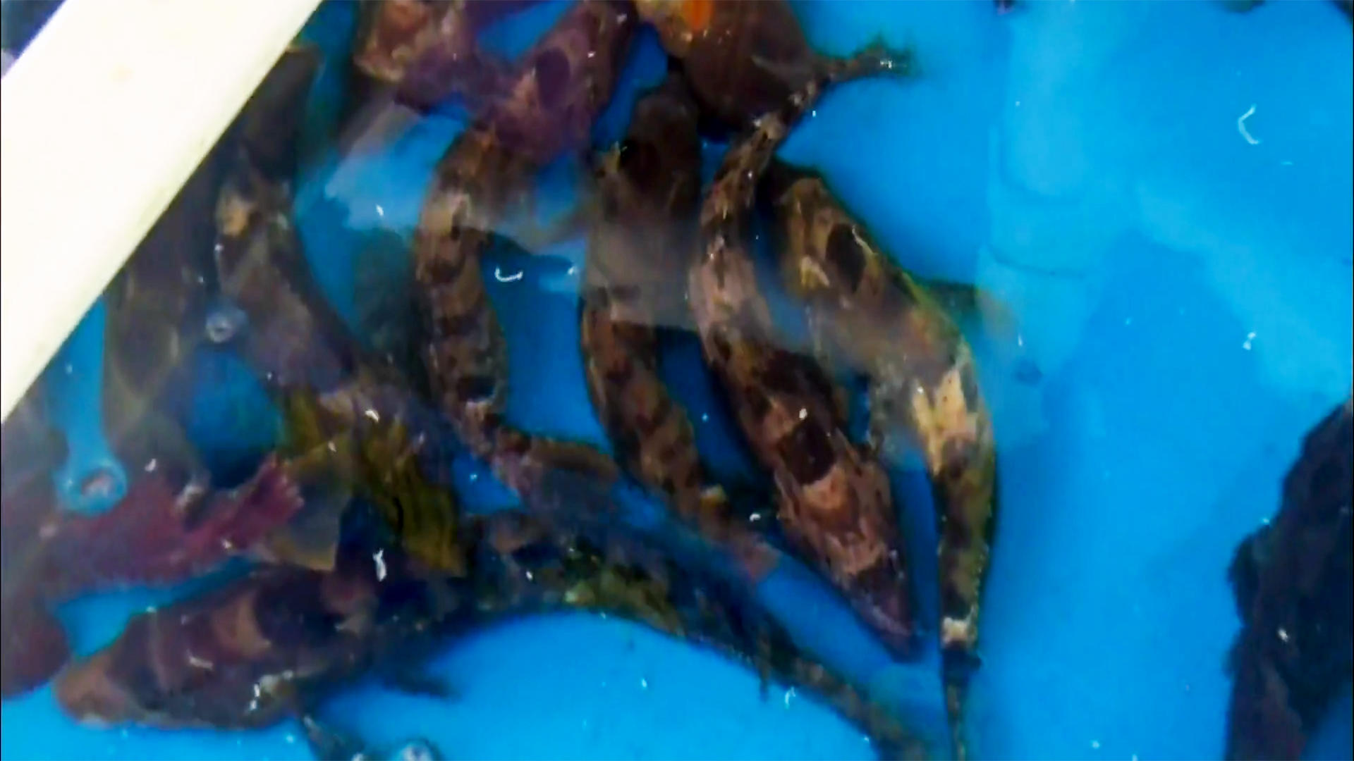 수족관에 자연산 물고기들이 담겨 있습니다.