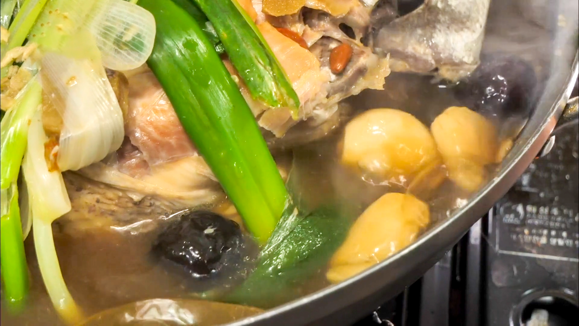일반 닭백숙 국물과는 다르게 한눈에 봐도 깊은 맛이 느껴질 정도로 아주 진하고 깊은 맛을 냅니다.