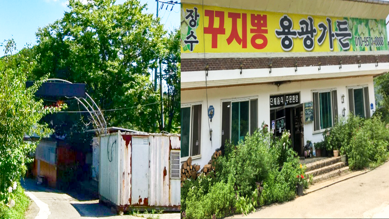 장수군 맛집 '용광가든'의 입구입니다. 시골의 오래된 지역 맛집의 분위기를 풍기며 내비게이션을 켜고 가면 어렵지 않게 찾아갈 수 있습니다. 전용 주차장도 마련해 놓고 있어 편하게 주차할 수 있습니다. 꾸찌뽕 농장과 음식점을 함께 운영하고 있으며 예약을 하고 가면 미리 세팅을 해놓기 때문에 좀 더 펀하게 먹을 수 있습니다.