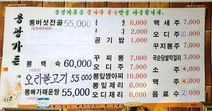 ※ 여러 가지 한식, 보양식을 판매하고 있으며 메뉴와 가격은 음식점 사정에 따라 변경될 수 있습니다.