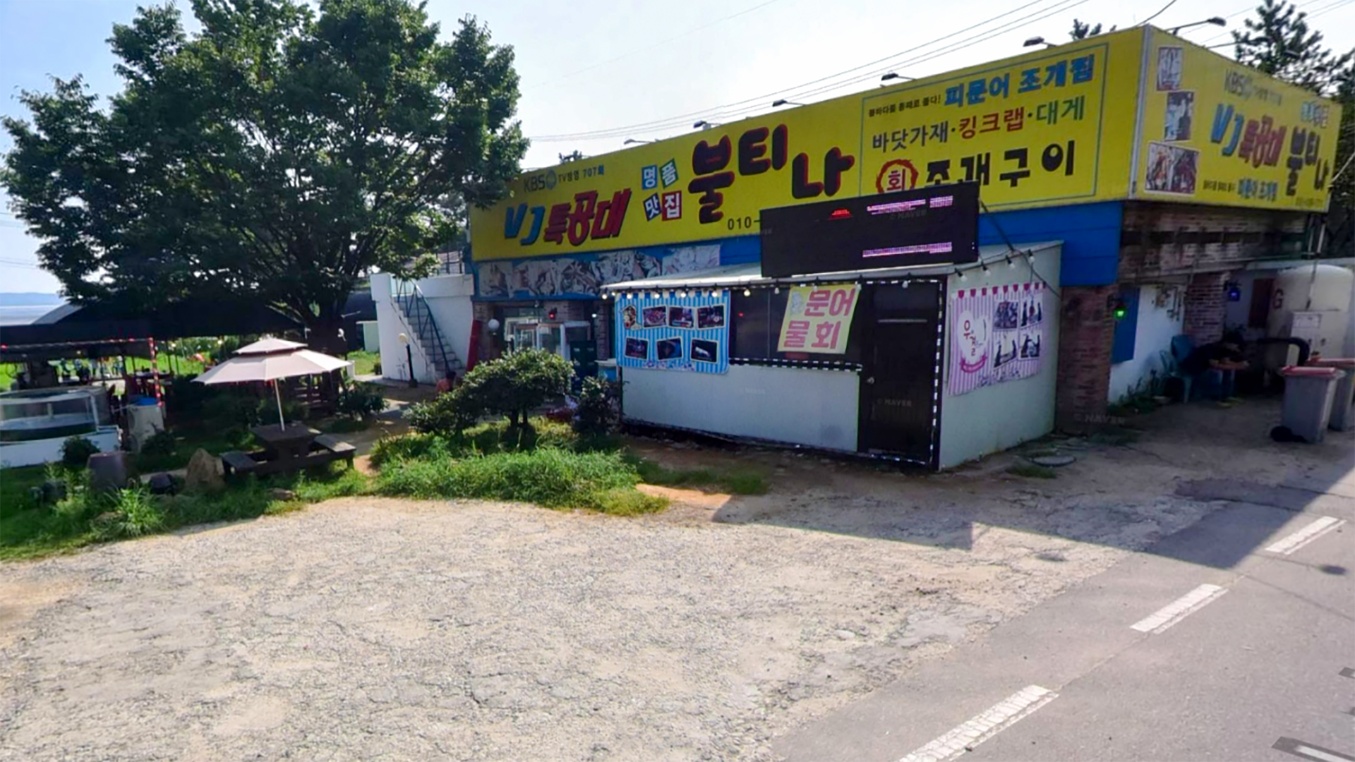 영종도 맛집 '불티나조개구이'의 입구입니다. 내비게이션을 켜고 가면 어렵지 않게 도착할 수 있습니다. 주차장도 마련되어 있어 편하게 주차할 수 있습니다.