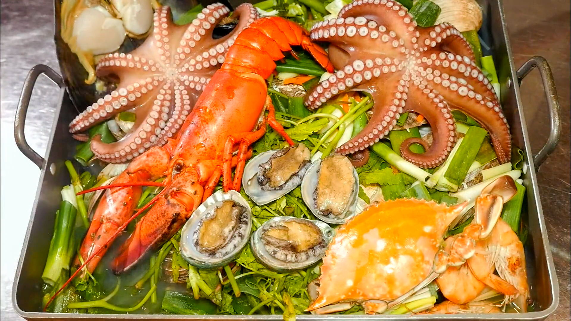 피문어 조개찜 대 150,000원 (랍스터 포함) 중 120,000원 (랍스터 미포함)