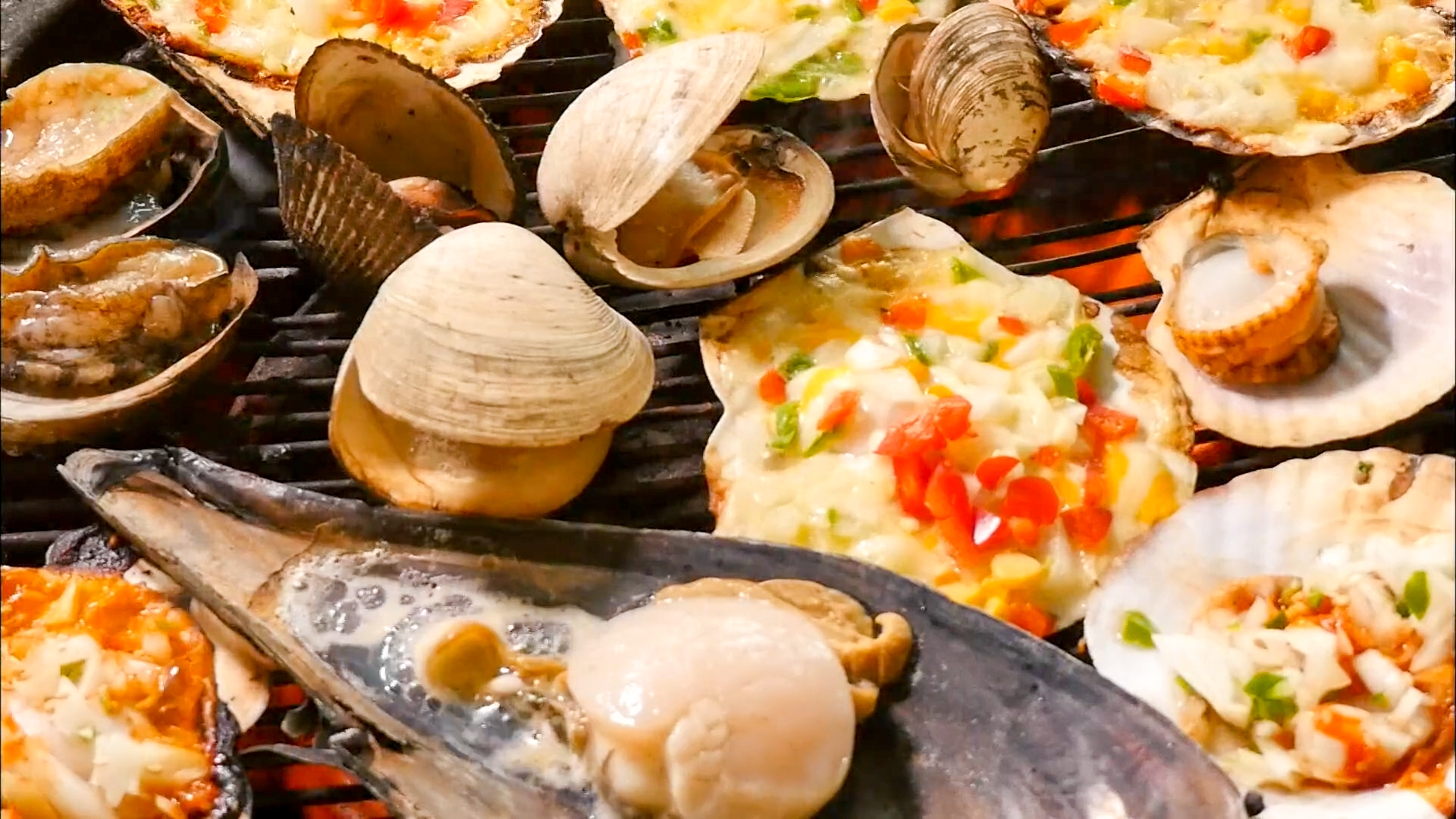 모둠 조개구이가 군침을 절로 삼키게 만듭니다. 초벌 되어 나오기 때문에 치즈가 익으면 바로 먹을 수 있습니다.