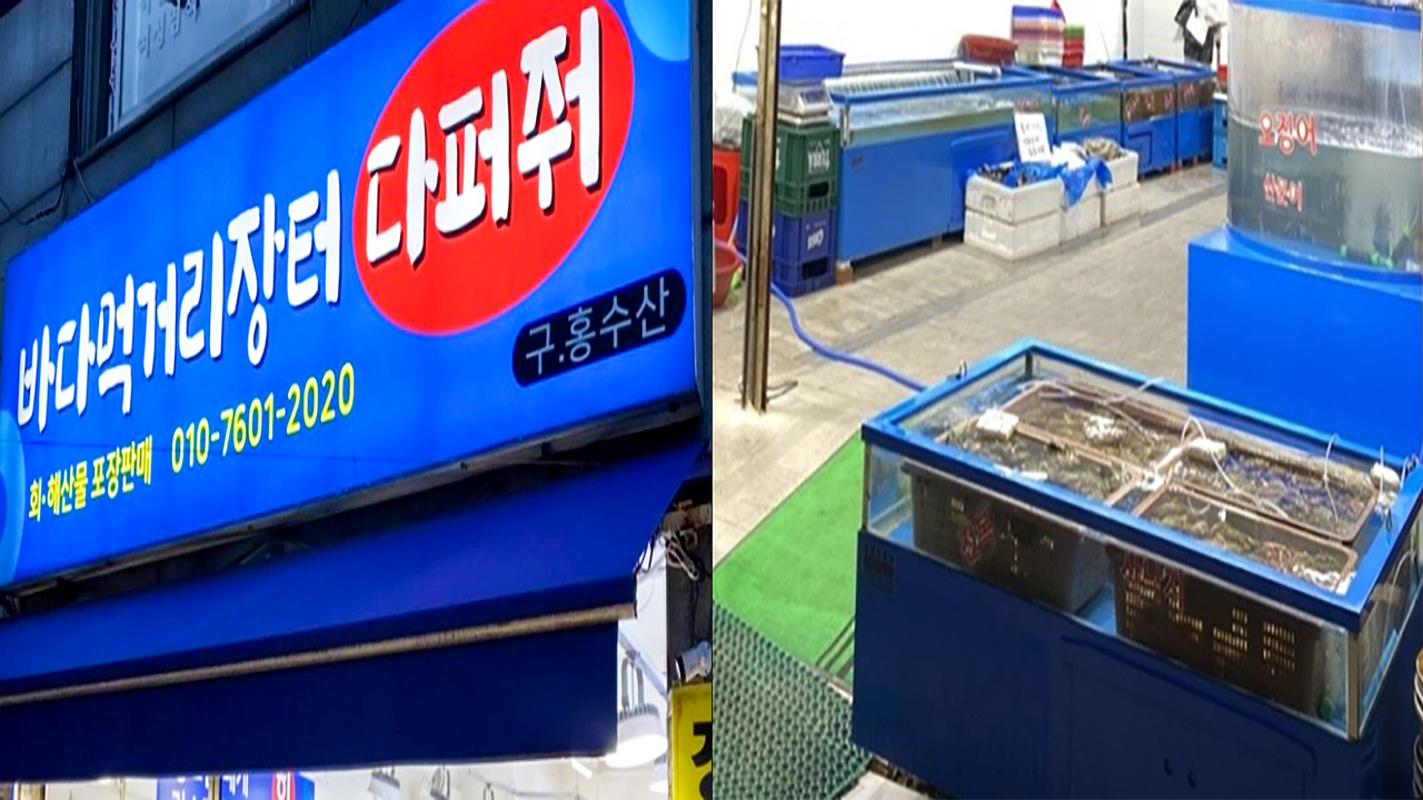 청량리역 맛집 (청량리 맛집) 바다먹거리 장터 '다퍼줘'의 외관입니다. 1호선 경춘선 청량리역 1번 출구에서 도보로 약 3~ 4분 정도의 거리에 위치하고 있습니다. 1번 출구로 나와서 제기동역 방면으로 조금만 직진하다 보면 오른쪽에 파란 간판이 보입니다. 자차 이용 시에는 경동시장 상가 지하 민영 주차장을 이용하면 편하게 주차할 수 있습니다.