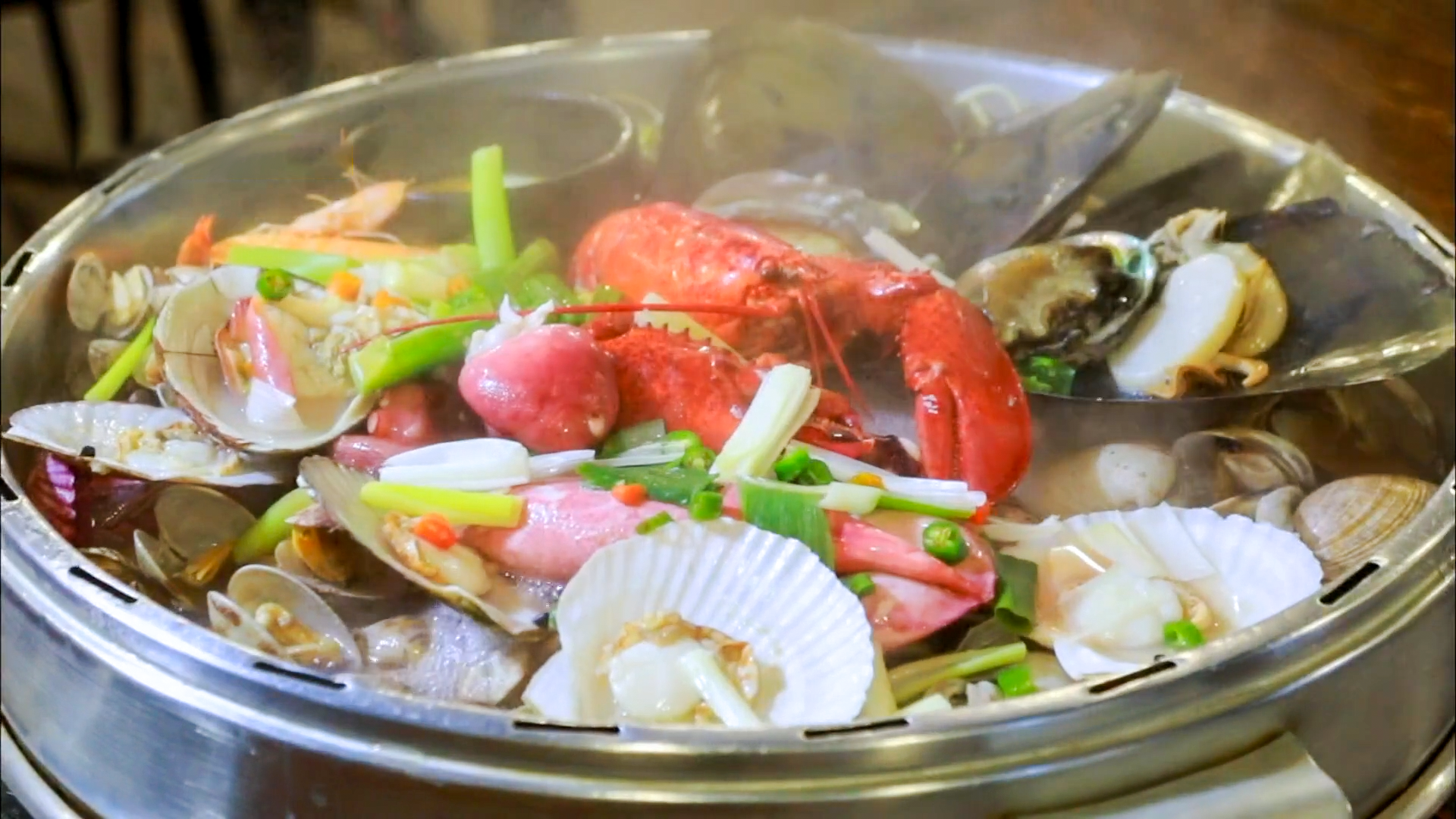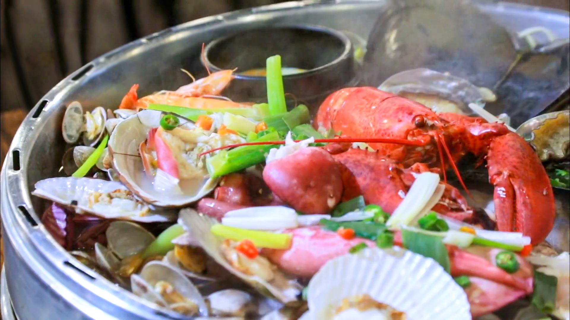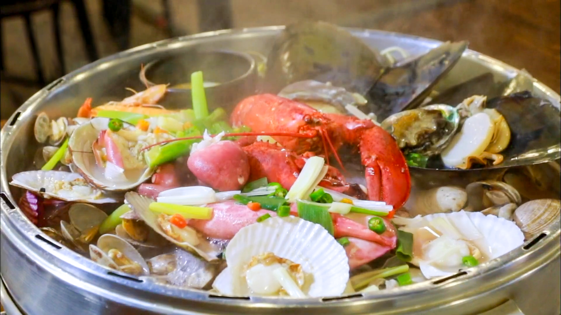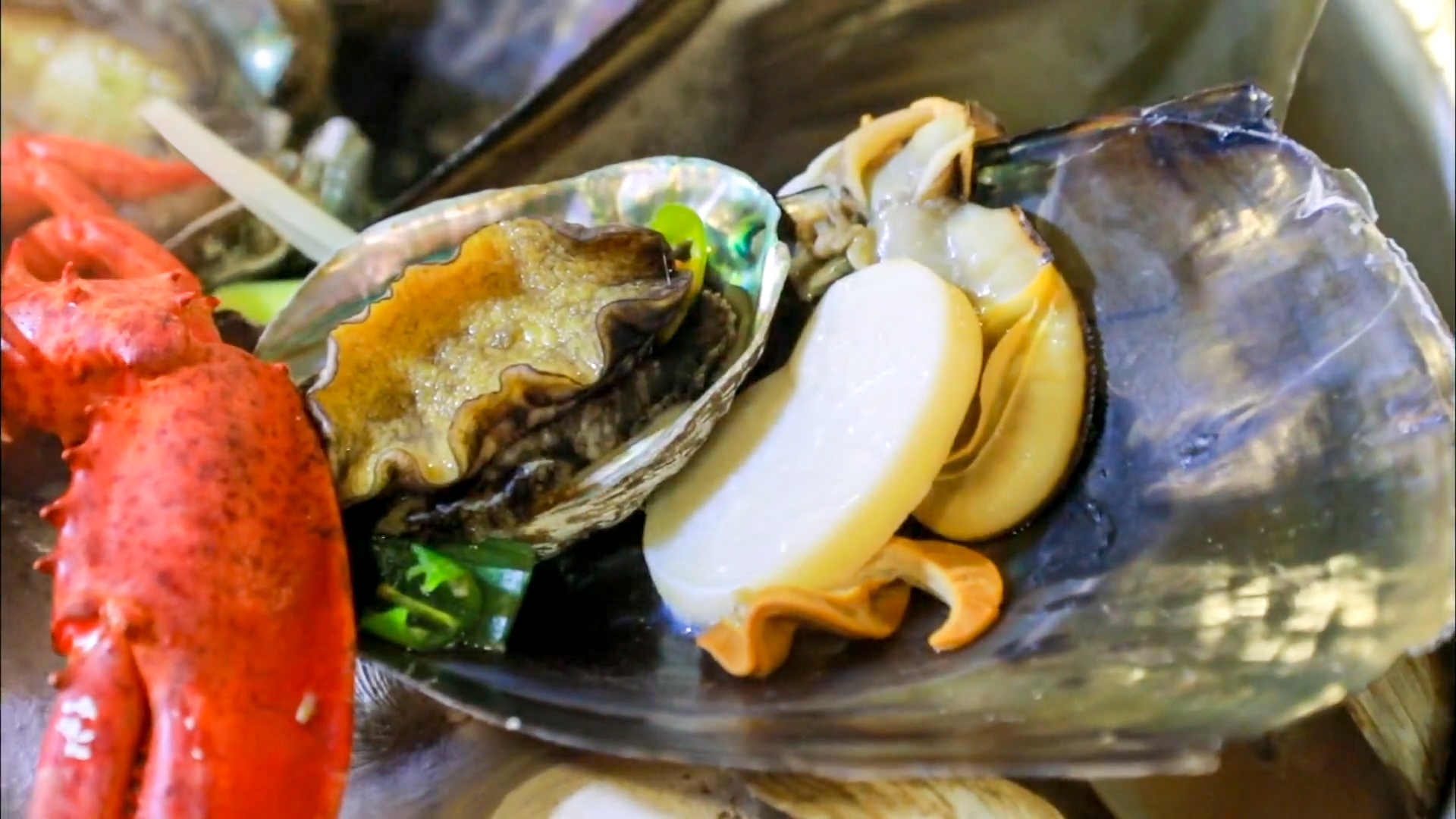 큼지막한 랍스터, 키조개, 가리비, 바지락, 전복, 꽃게 등 다양한 해산물이 들어가 있습니다.