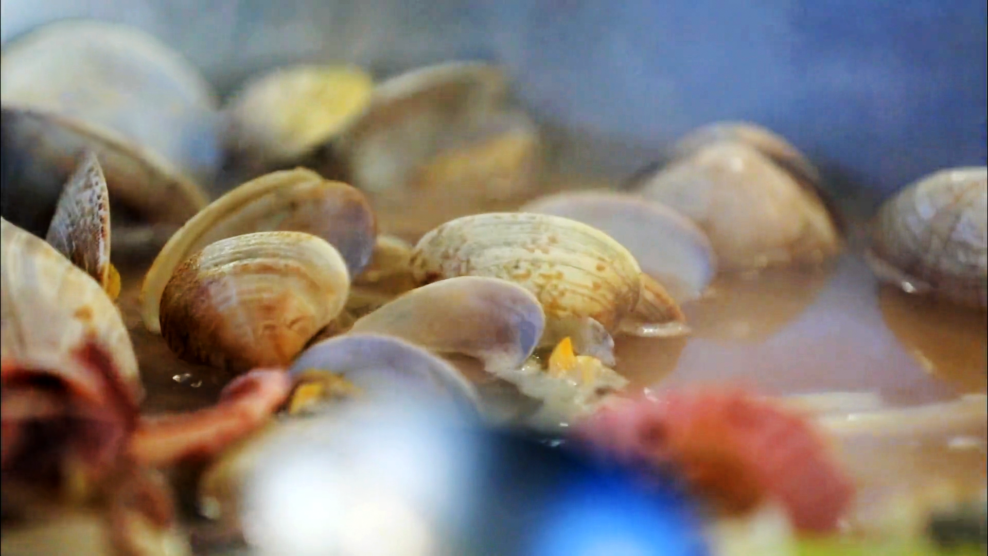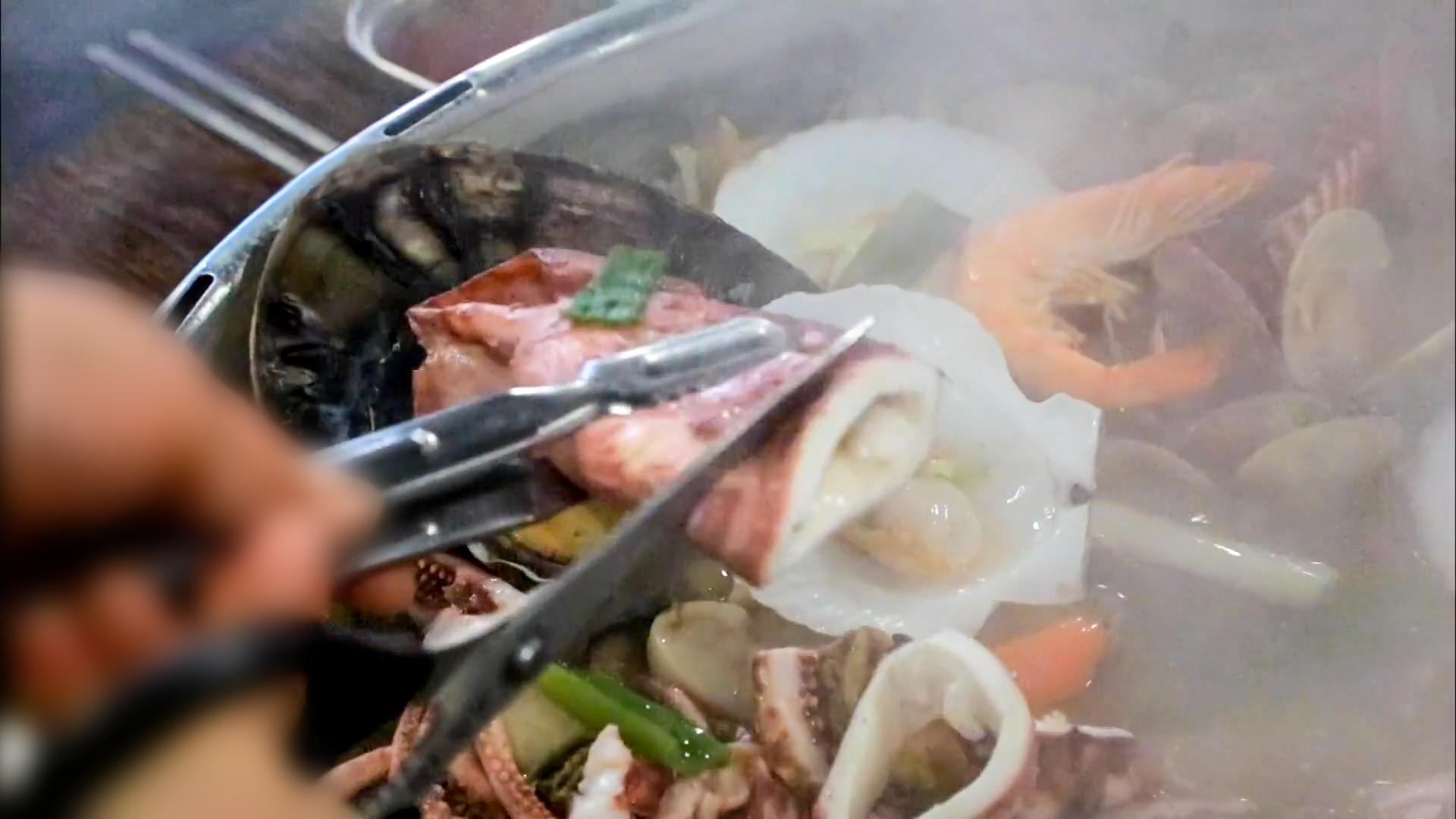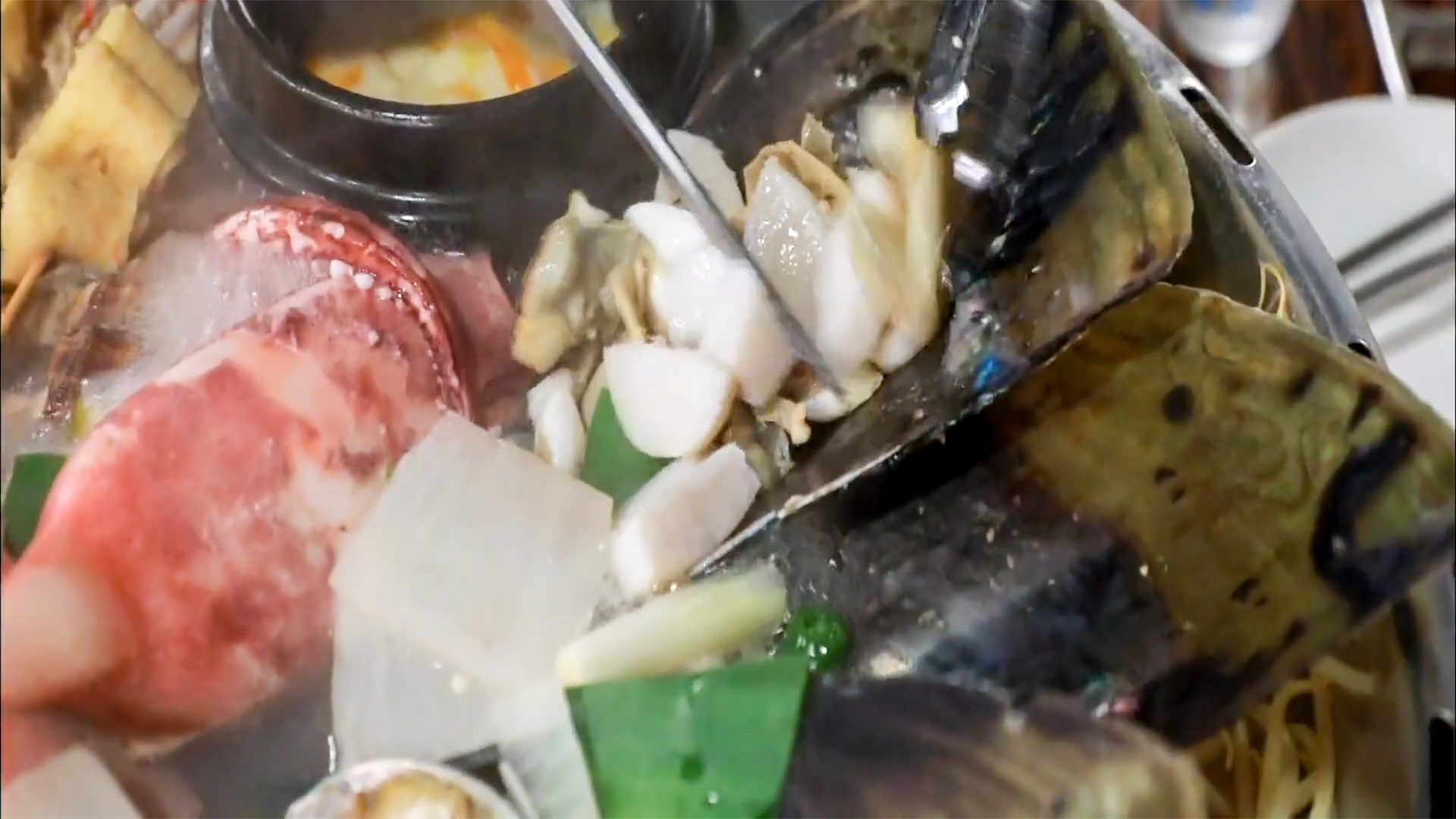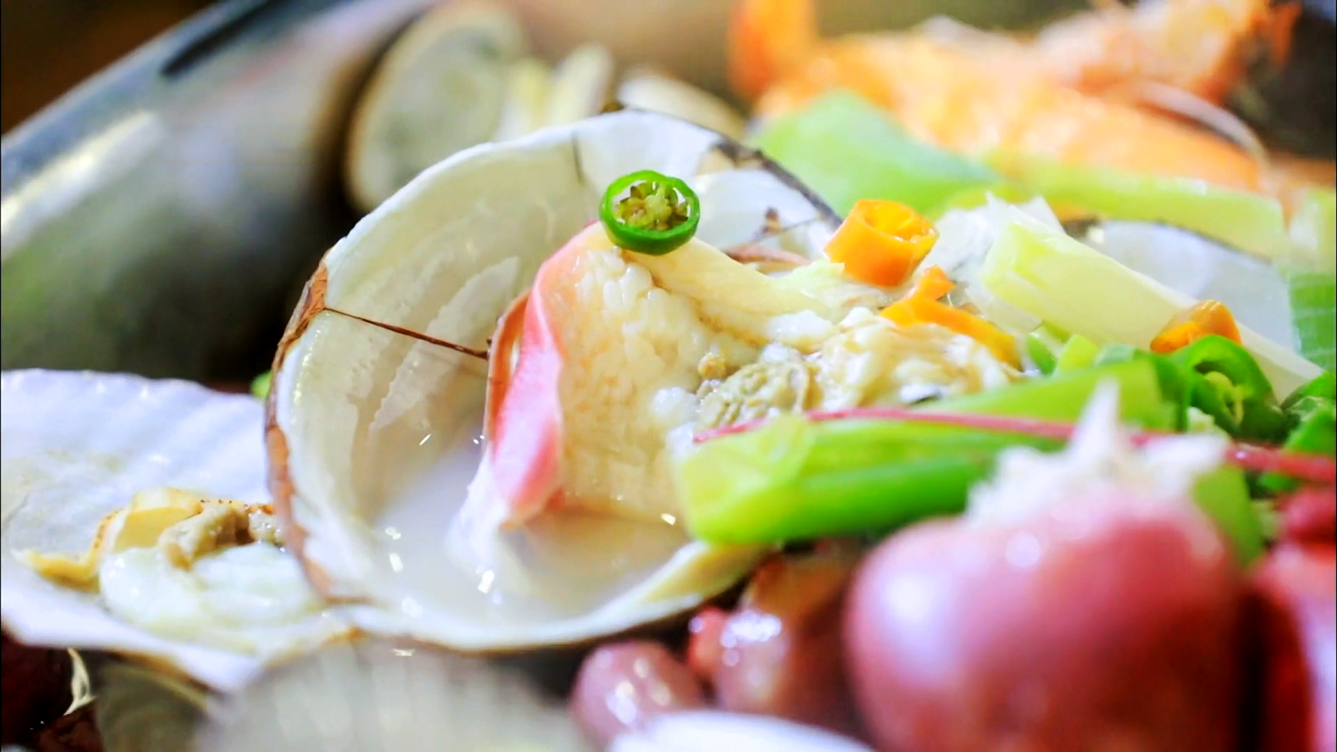 큼지막한 랍스터, 키조개, 가리비, 바지락, 전복, 꽃게 등 다양한 해산물이 들어가 있습니다.