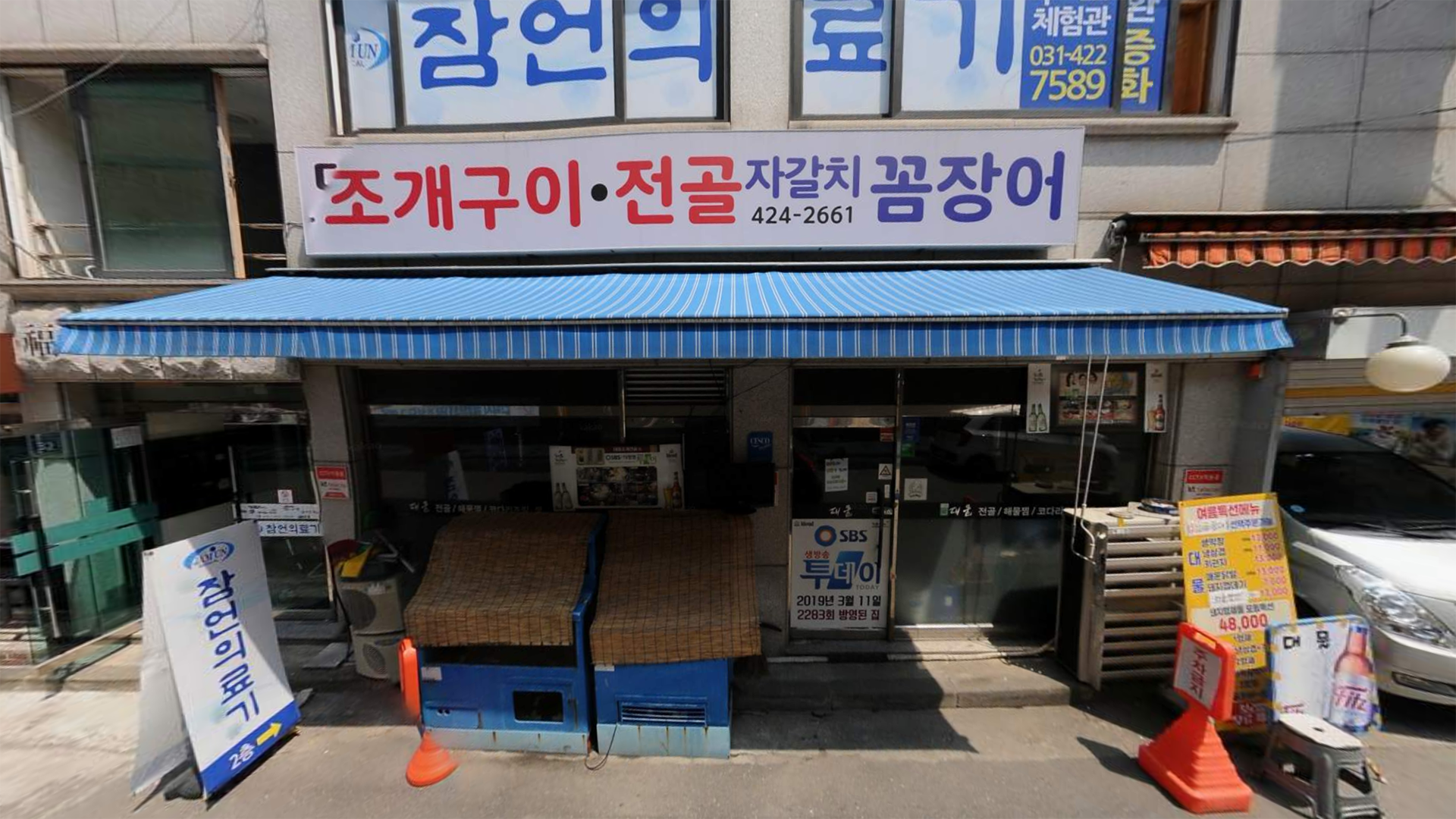 안양 맛집(인덕원 맛집) '대물조개전골'입니다. 인덕원역 4번 출구에서 도보로 약 4~ 5분 정도 걸리는 거리에 위치하고 있습니다.