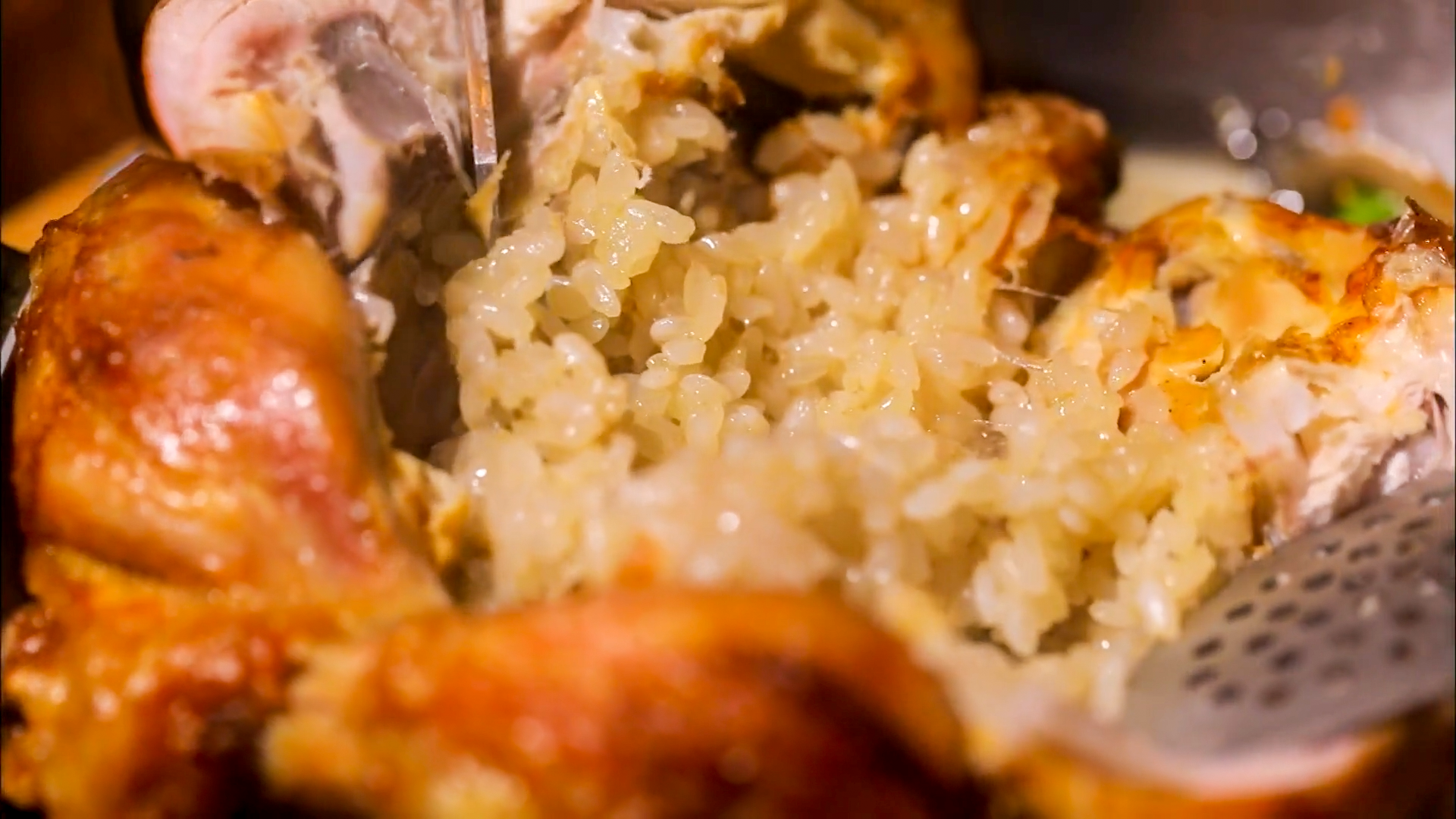 치킨 속에 입에 착착 감기는 찰밥이 들어가 있습니다.
