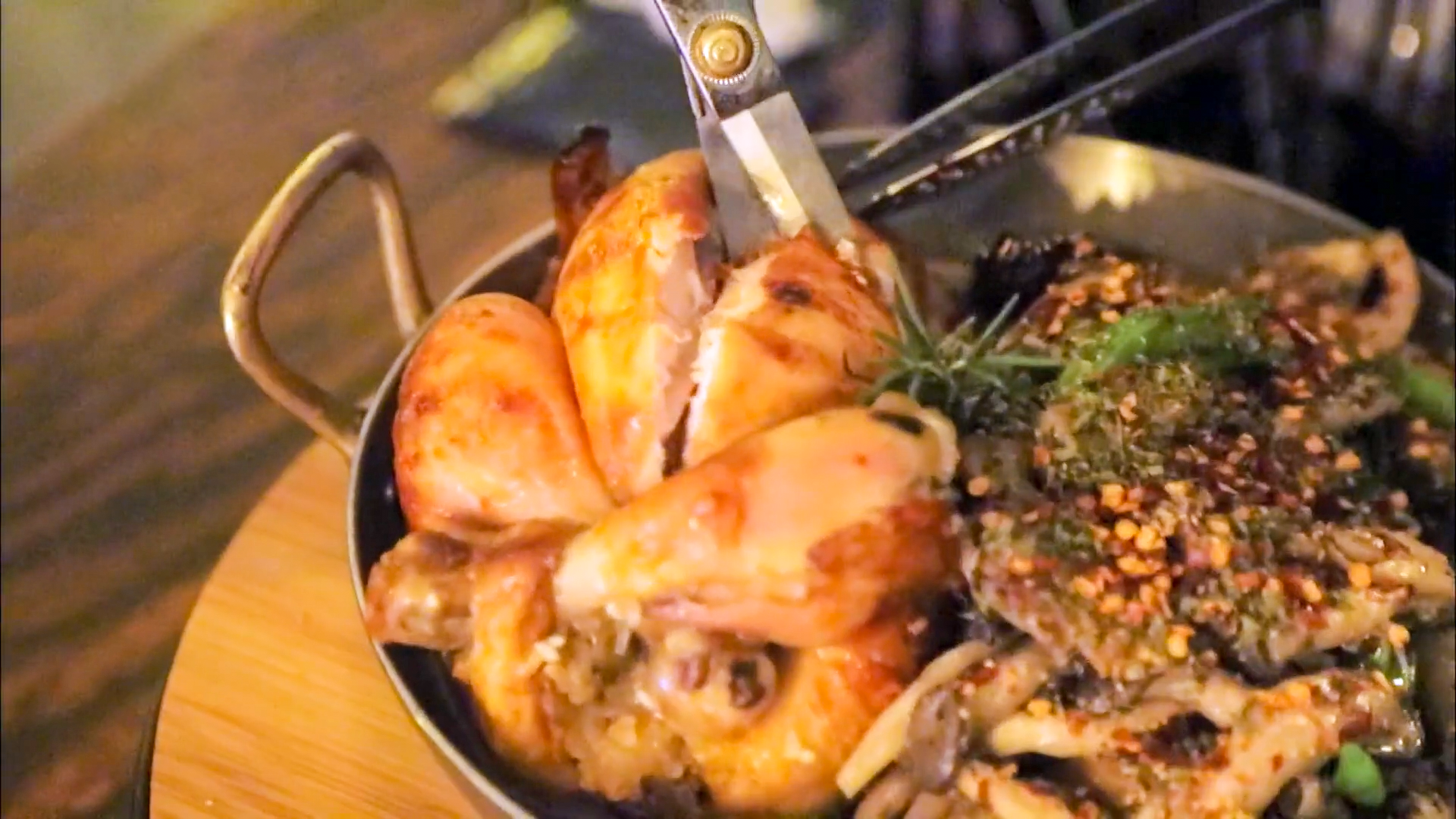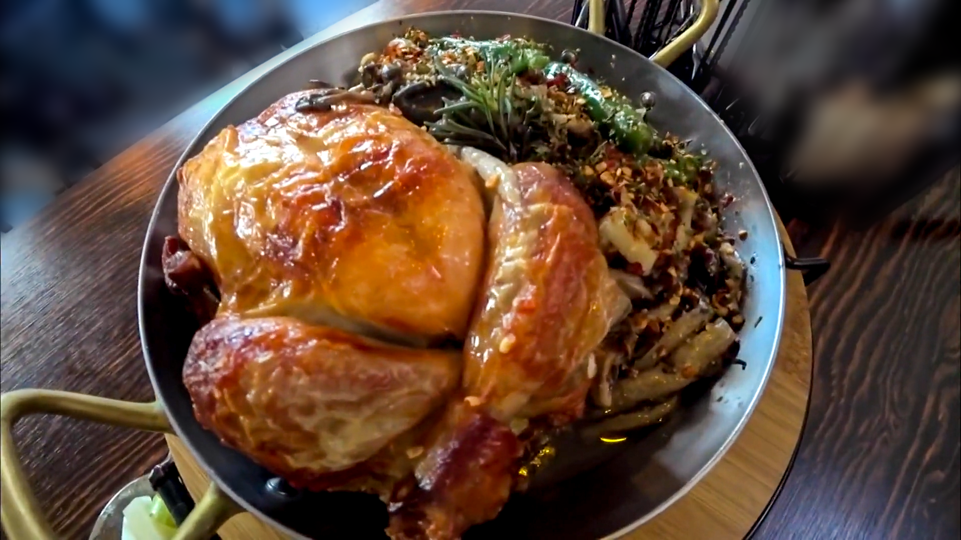 다른 곳에서 판매하는 일반 전기통닭과는 다른 색다른 맛의 전기통닭을 맛볼 수 있으며 맛도 요리도 다양해 골라먹는 재미도 있습니다. 전기구이 통닭이라 기름이 쫙 빠져 있어 살코기가 아주 부드러우며 느타리버섯과 꽈리고추를 곁들여 먹을 수 있어 건강한 맛이 납니다. 그리고 꽈리고추와 느타리버섯 등 채소가 닭고기의 느끼한 맛을 단번에 잡아줘 아주 담백하고 맛있게 먹을 수 습니다.