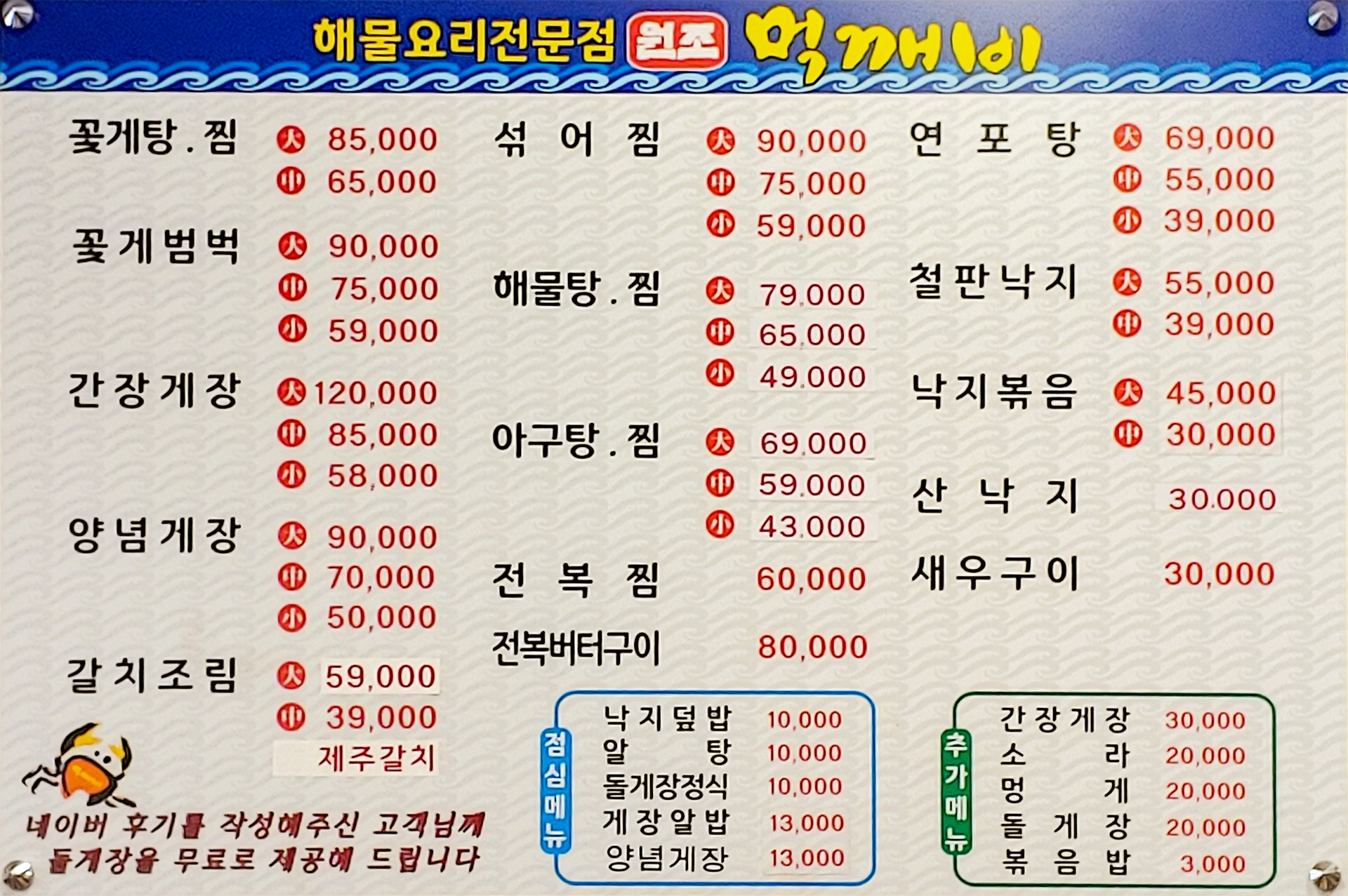※다양한 해산물 요리를 판매하고 있으며 메뉴와 가격은 음식점 사정에 따라 변경될 수 있습니다.