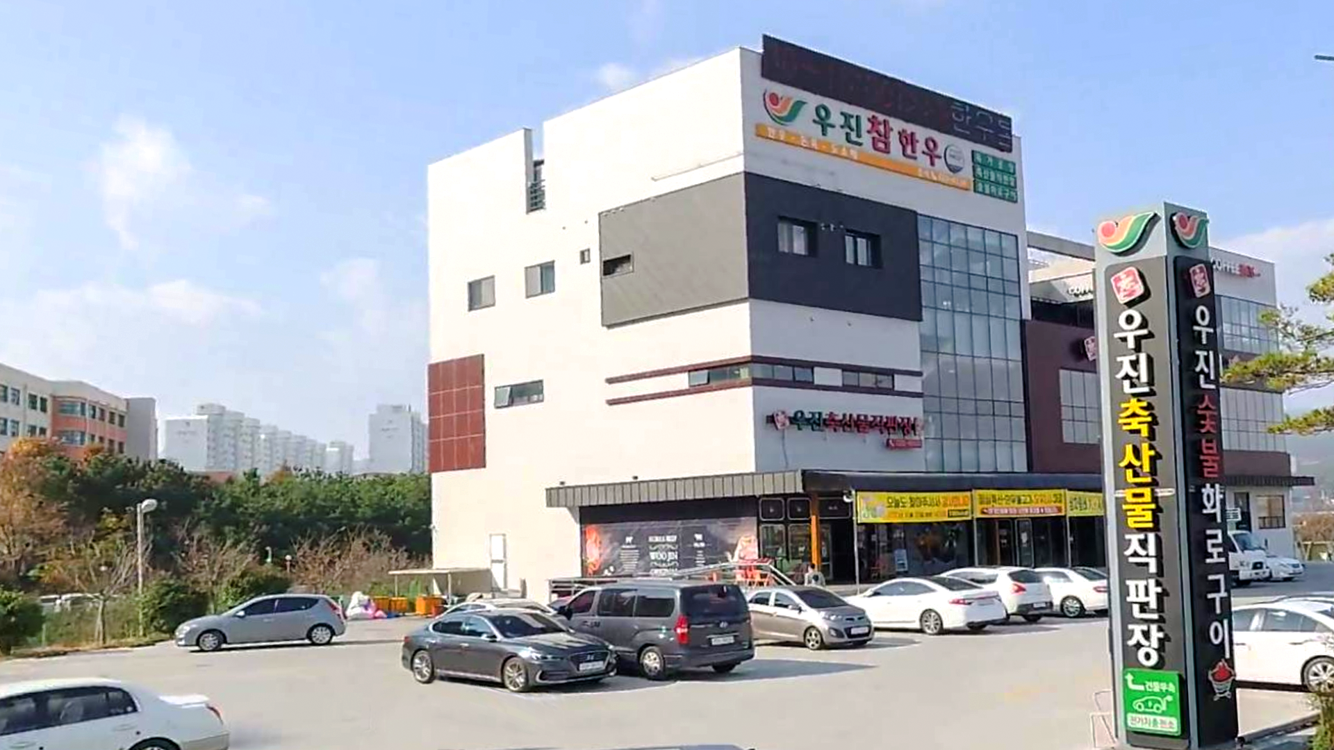 울산 맛집(울산북구 맛집) 우진숯불화로구이의 외관입니다. 지도를 참고하면 쉽게 찾아갈 수 있으며 넓은 주차장이 마련되어 있어 편하게 주차할 수 있습니다. 1층에 한우 직판장이 있어질 좋은 한우고기를 살 수 있습니다. 축산물 직판장에서 소고기, 돼지고기를 구입 후 우진숯불화로구이로 올라와서 구워 먹을 수 있습니다.