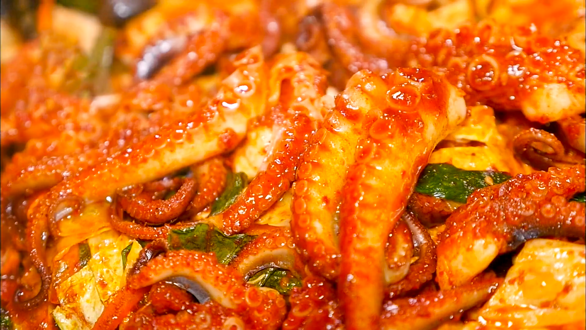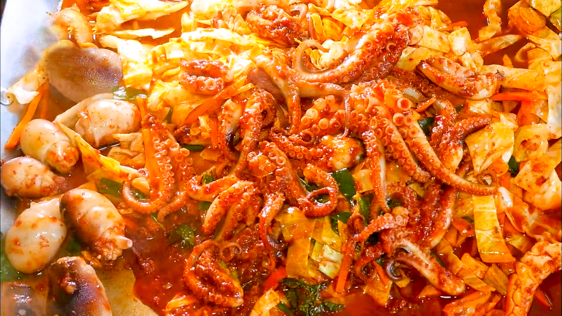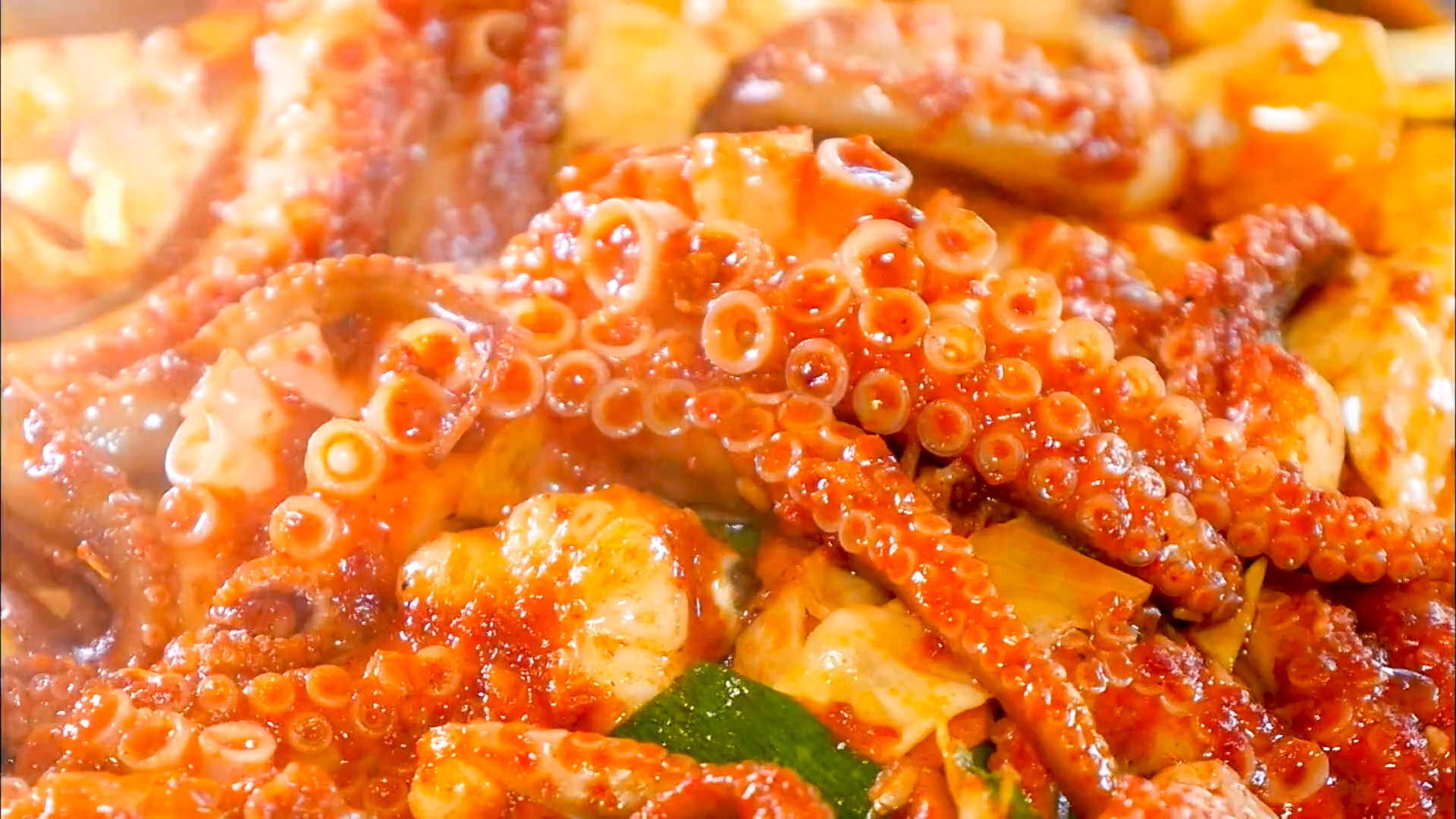 진한 양념에 싱싱한 활쭈꾸미를 볶아줍니다.