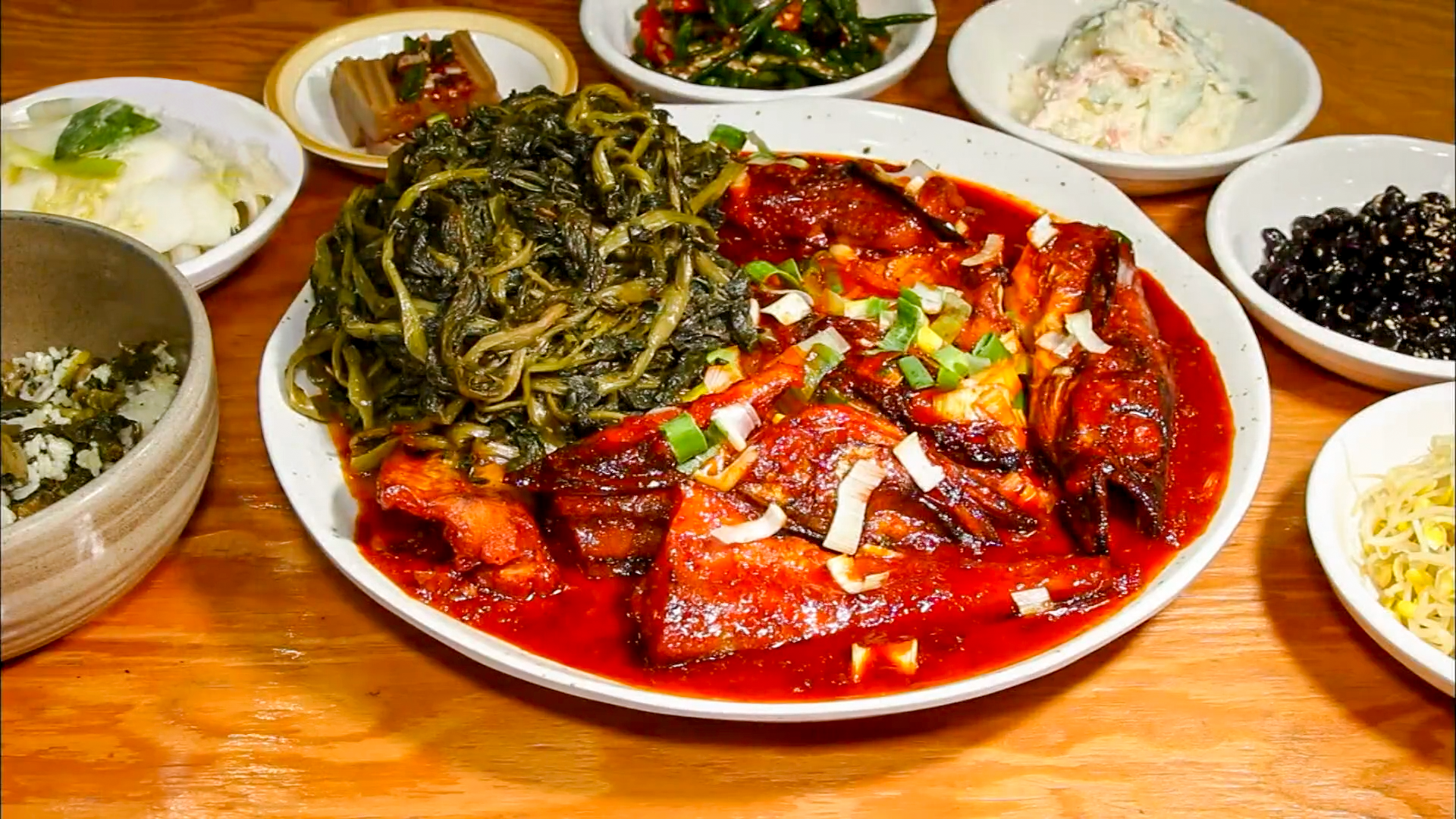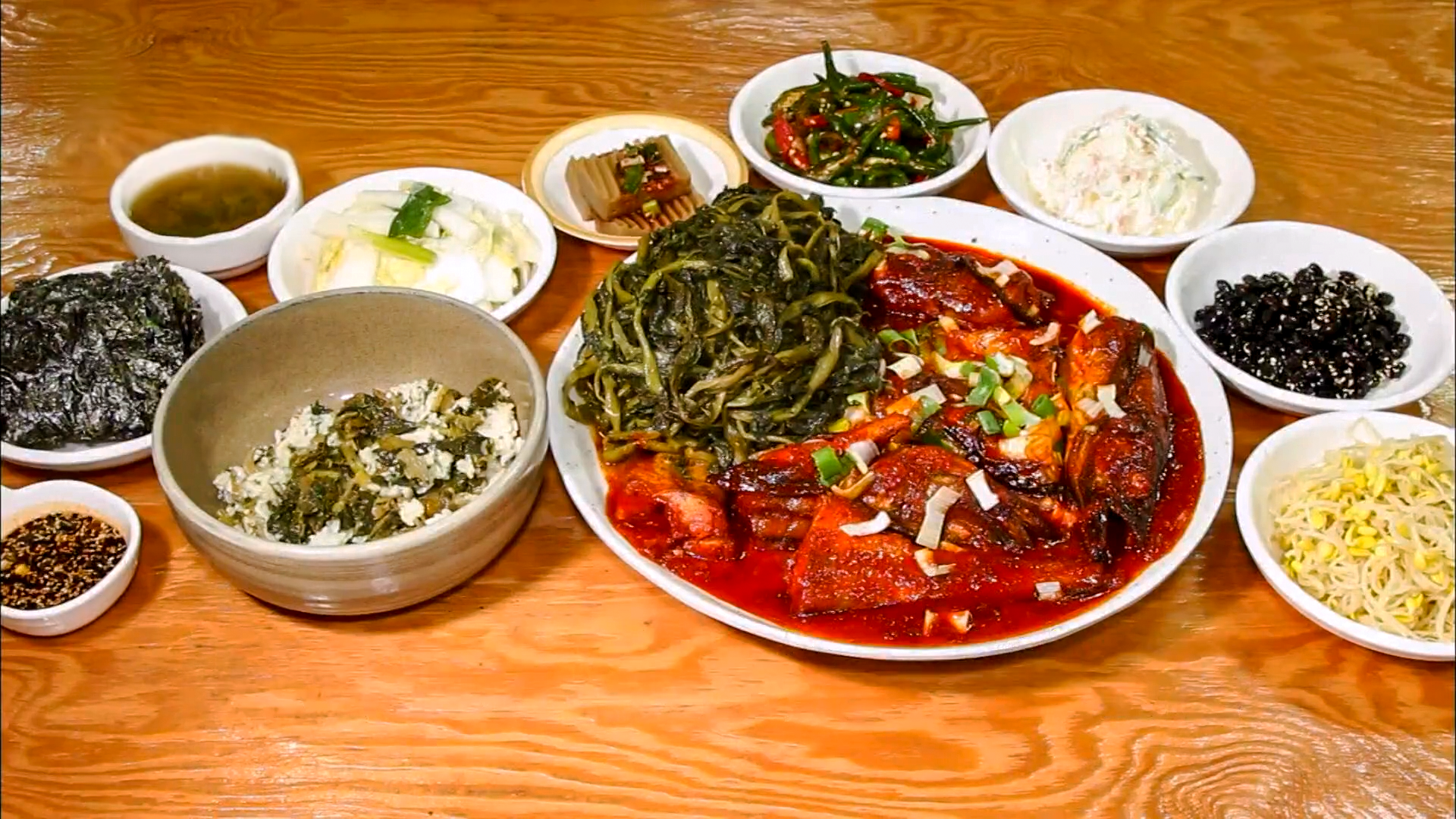 구수한 시래기밥과 빨간 코다리 조합이 아주 맛깔납니다.