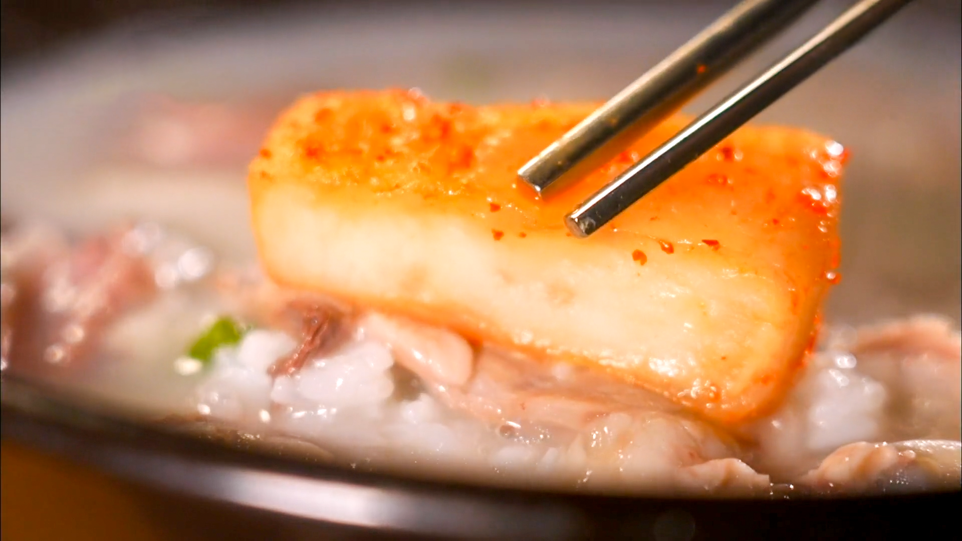 진한 국물에 야들야들한 한우가 들어가 있어 아주 진국입니다. 부드러우면서 쫀득하고 담백하면서 고소해 입맛을 매우 당기게 합니다.