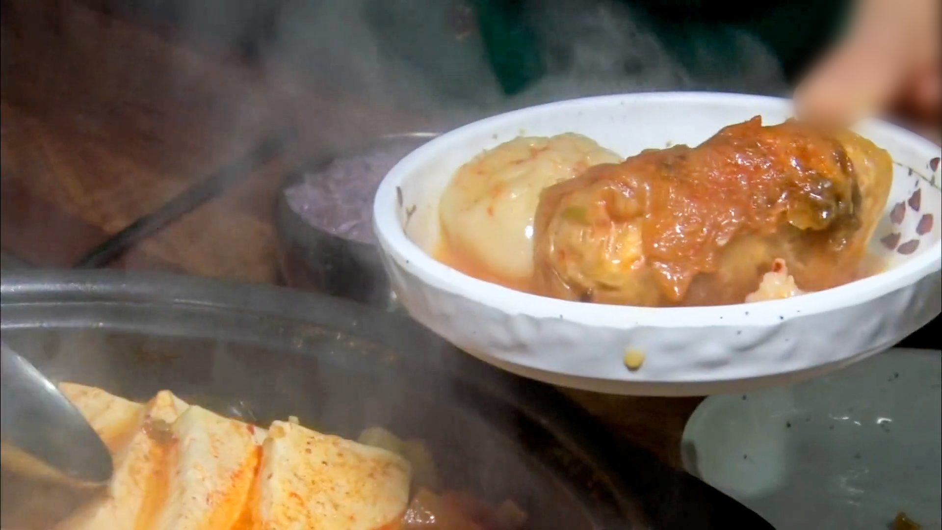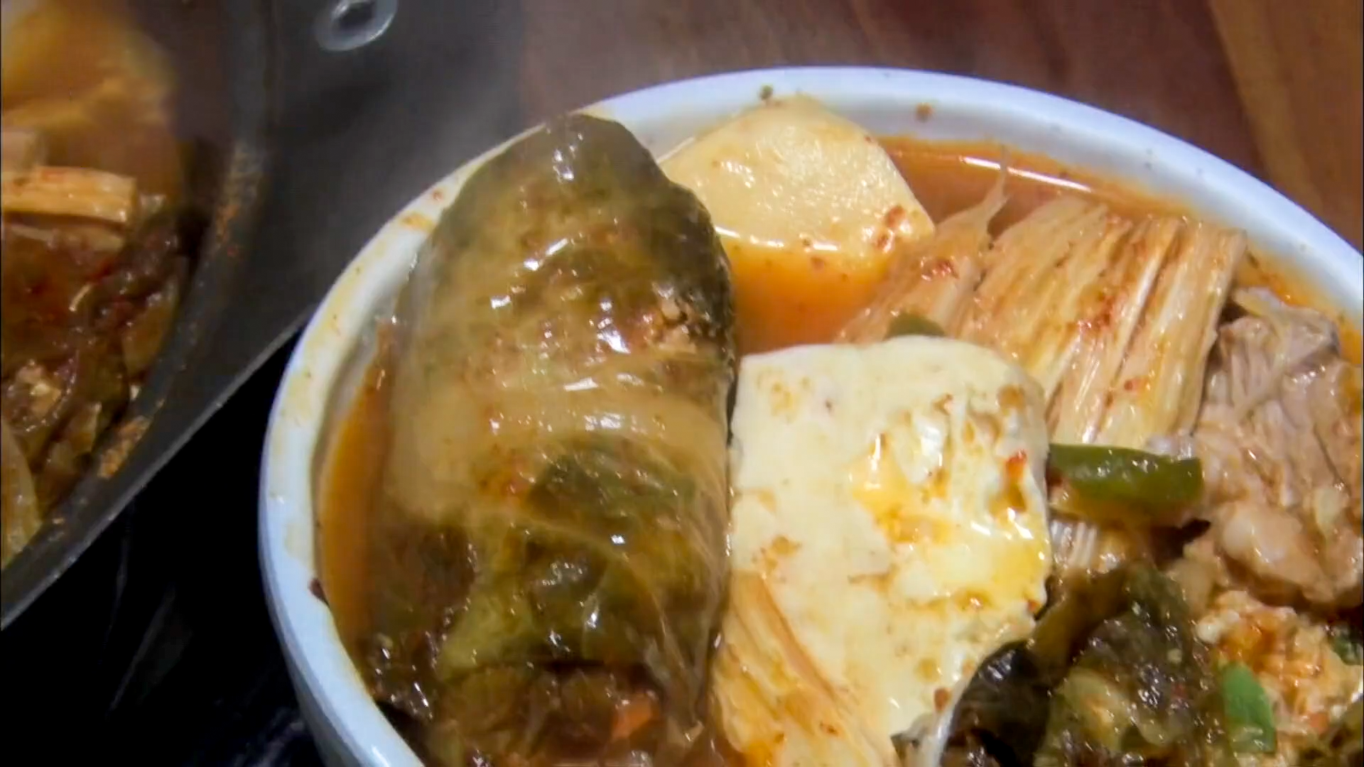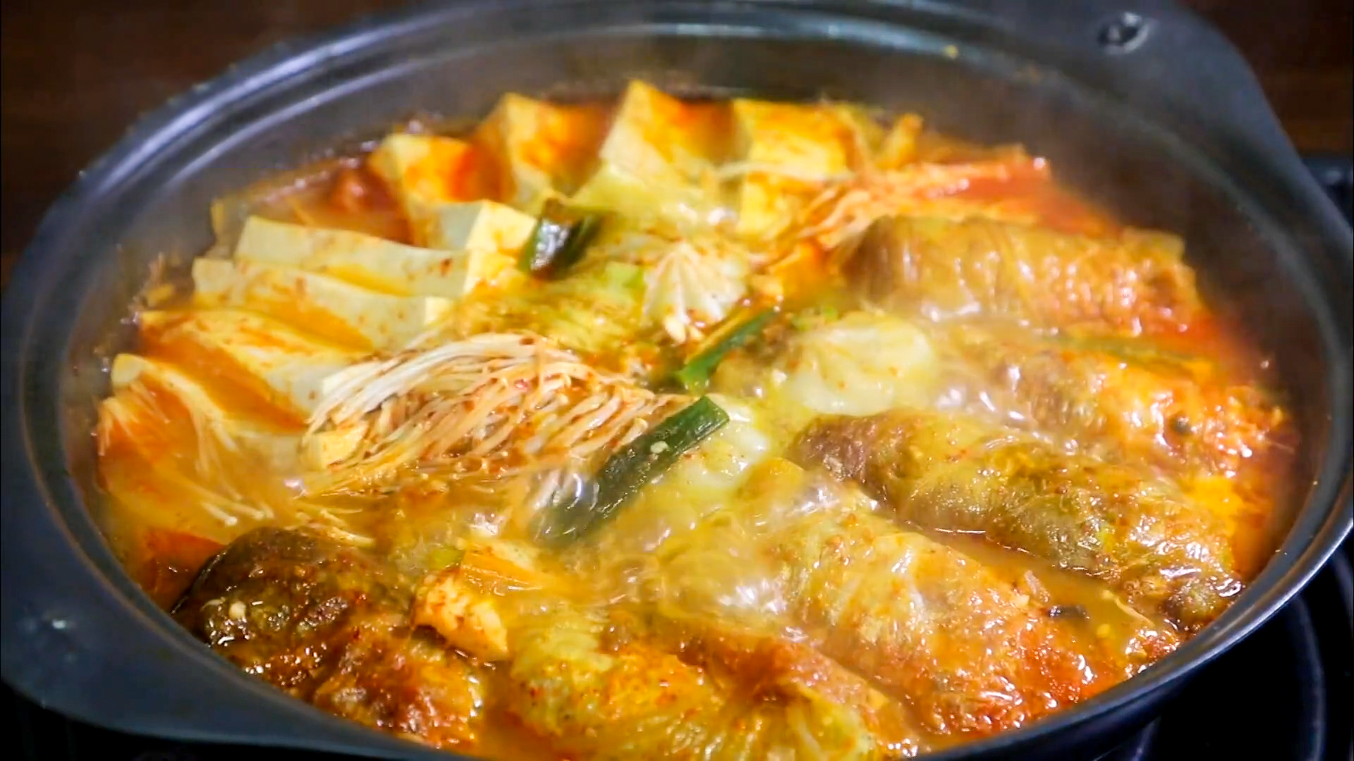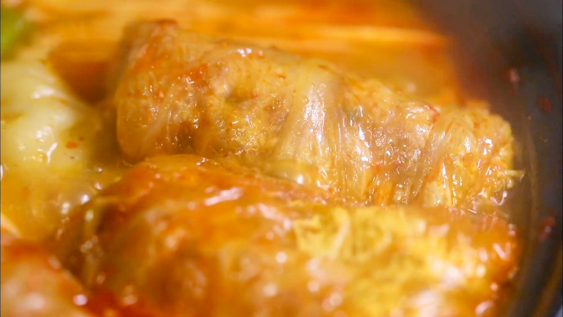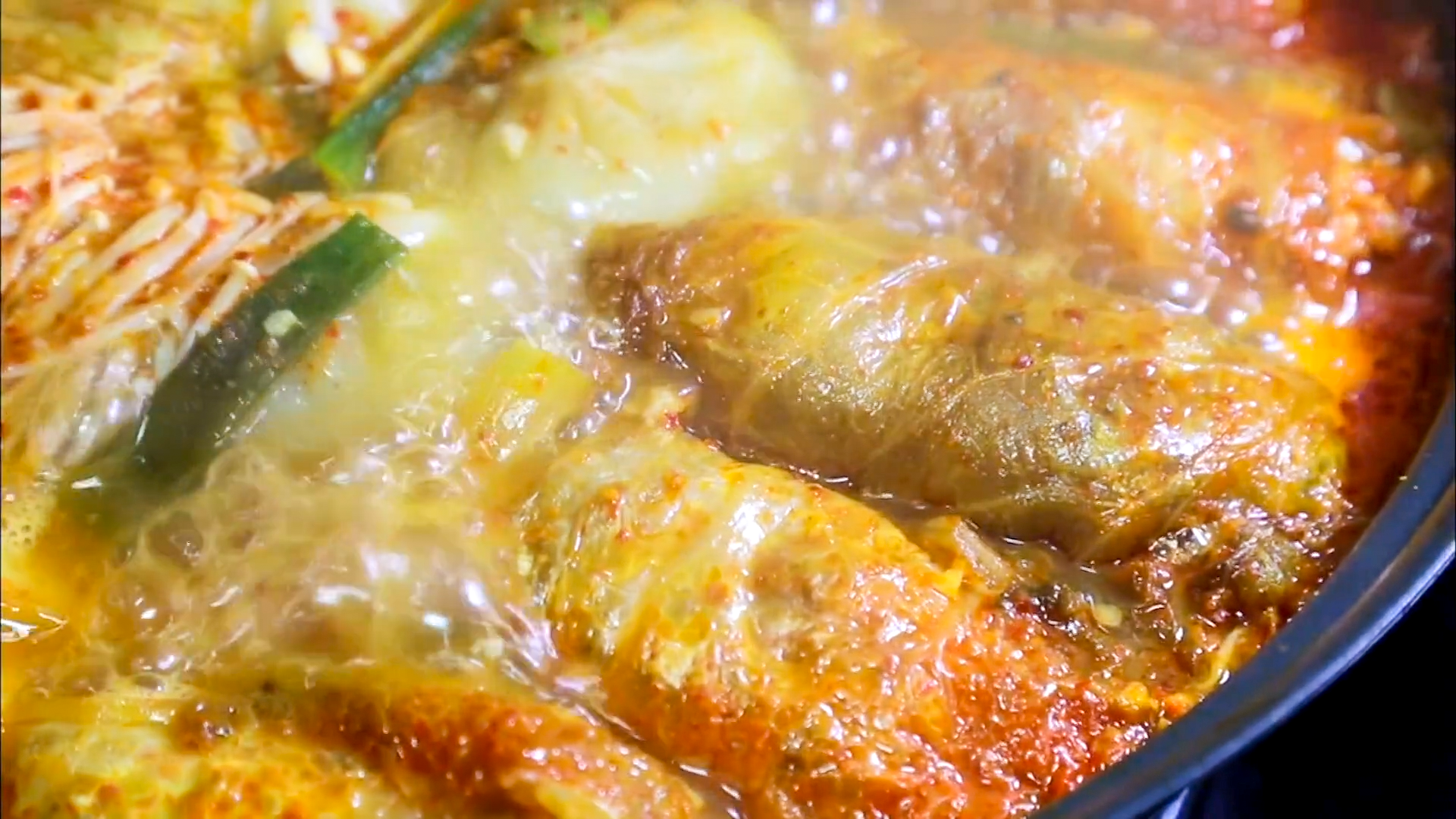 한소끔 끓여주면 고기소가 익으면서 김치에 육향이 배어 아주 먹음직스럽게 익습니다.