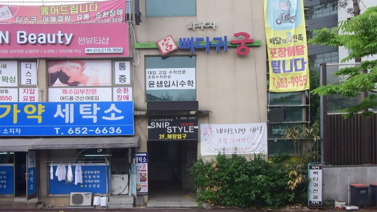 평택 맛집(비전동 맛집) 화부자 뼈다귀궁의 외관입니다. 이미 알 사람들은 다 아는 동네 맛집으로 평택 효성 백년가약 아파트 108동 앞에 있는 상가 지하층에 위치하고 있습니다. 자차 이용 시 104동 앞 제1정문 경비실에서 아파트 방문증을 발급받거나 근처 골목에 주차를 해야 합니다.