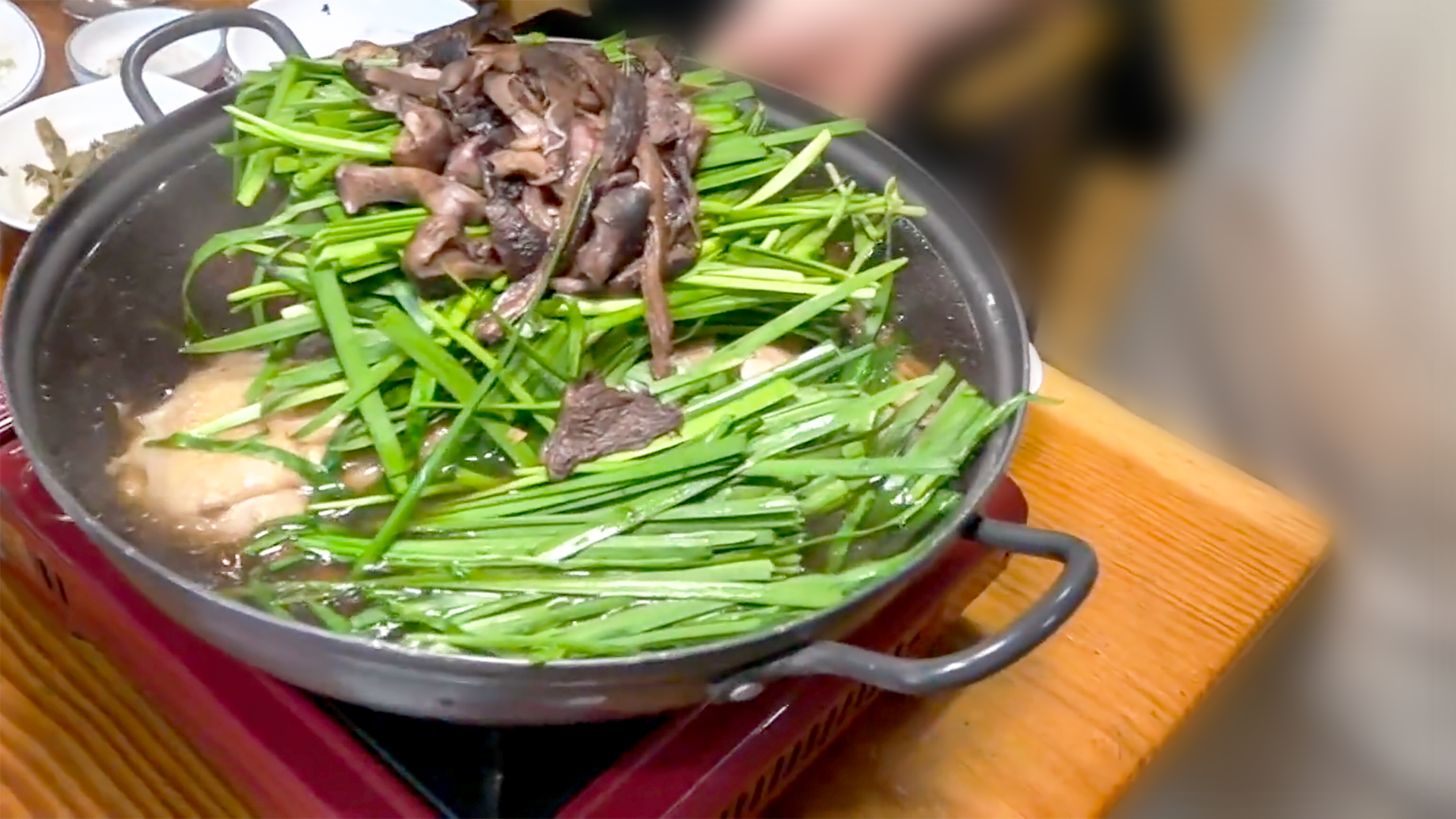 닭, 부추, 능이버섯 등 각종 재료가 푸짐하게 들어가 있으며 양이 많습니다.