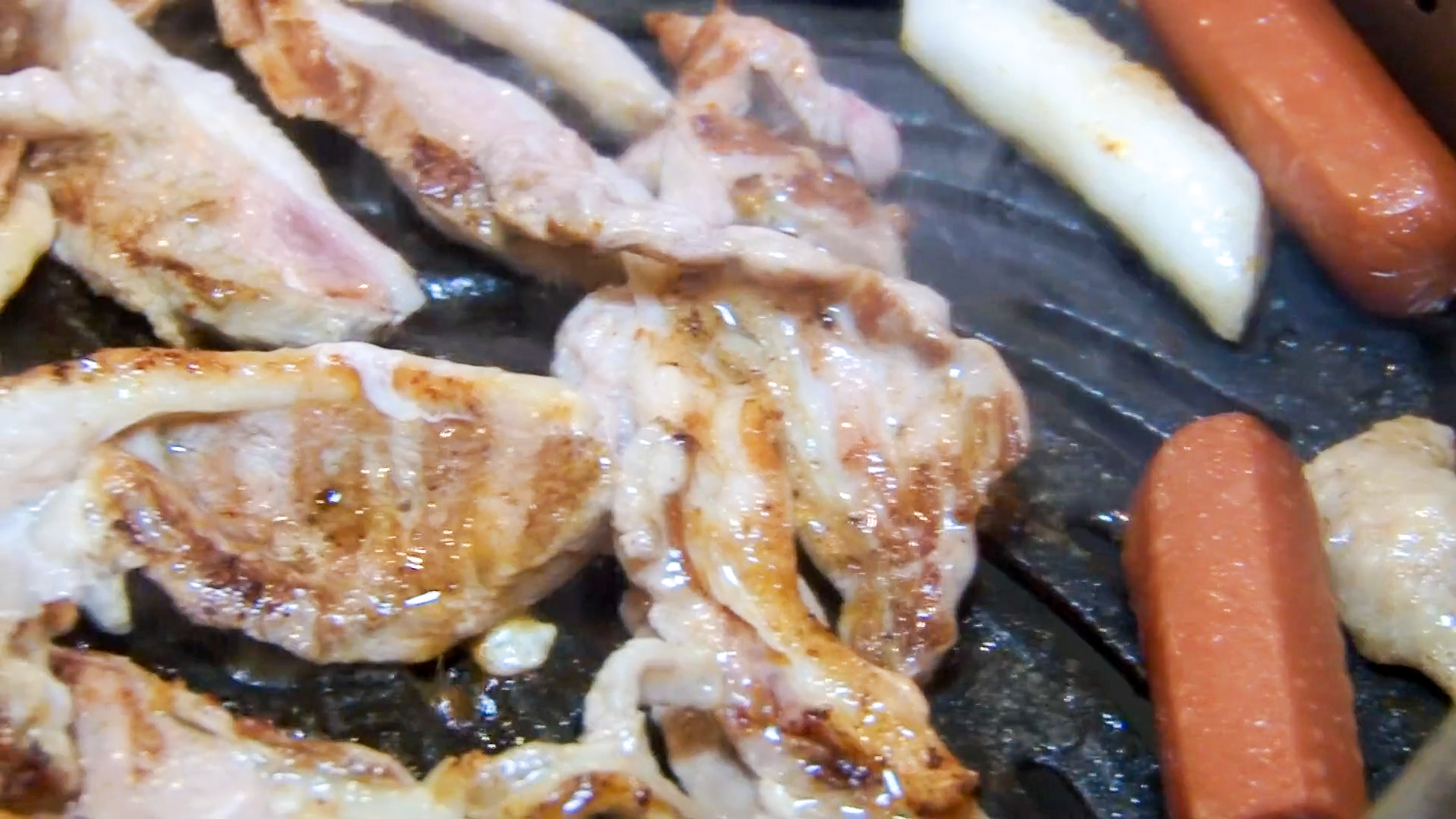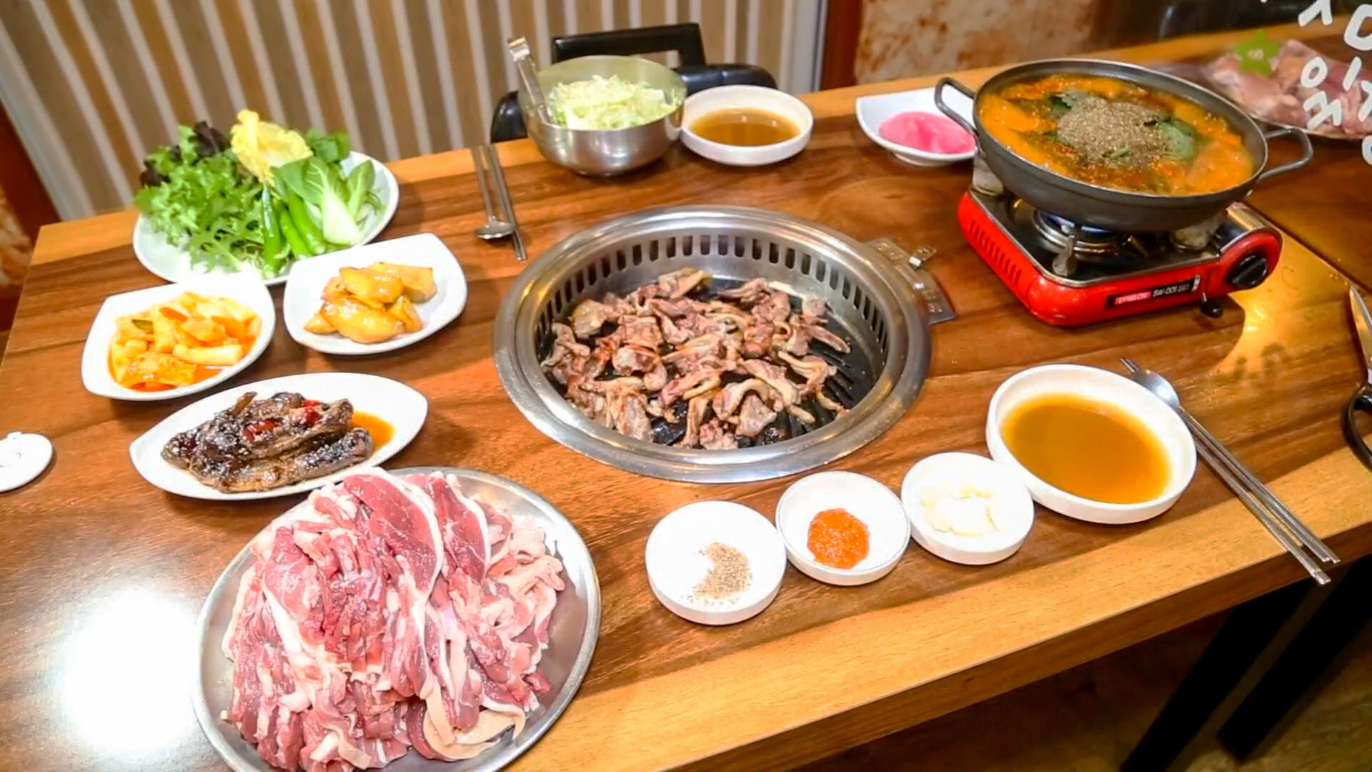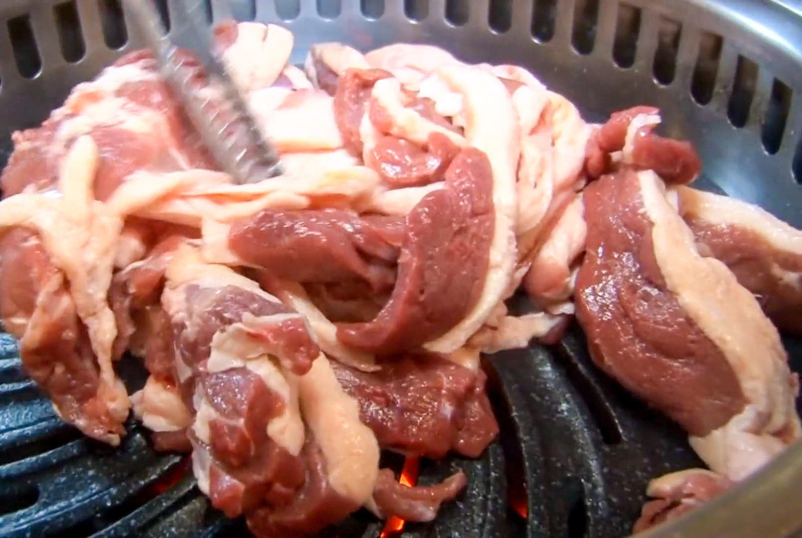 노릇노릇하게 익은 오리고기의 담백한 맛과 부드러운 식감이 아주 좋습니다. 참고로 고기, 채소, 반찬 등 모두 셀프입니다.