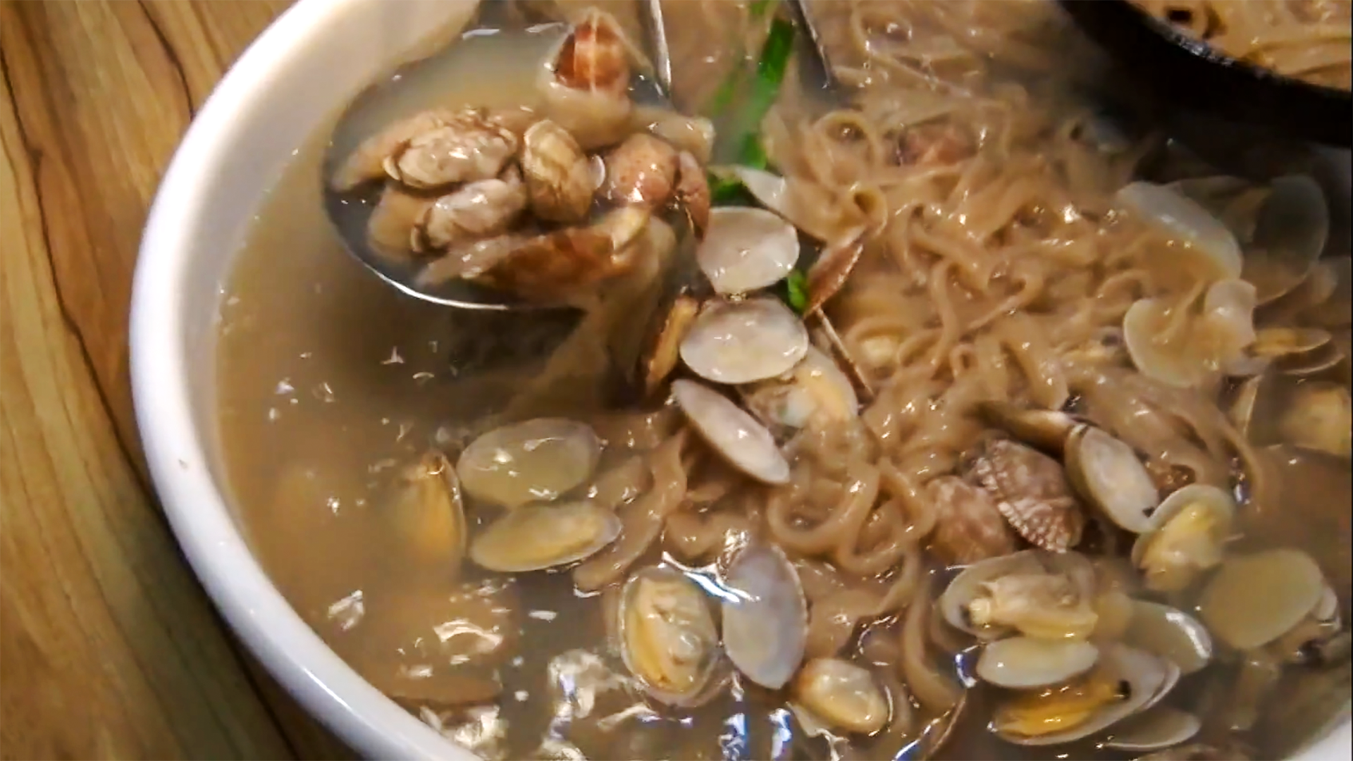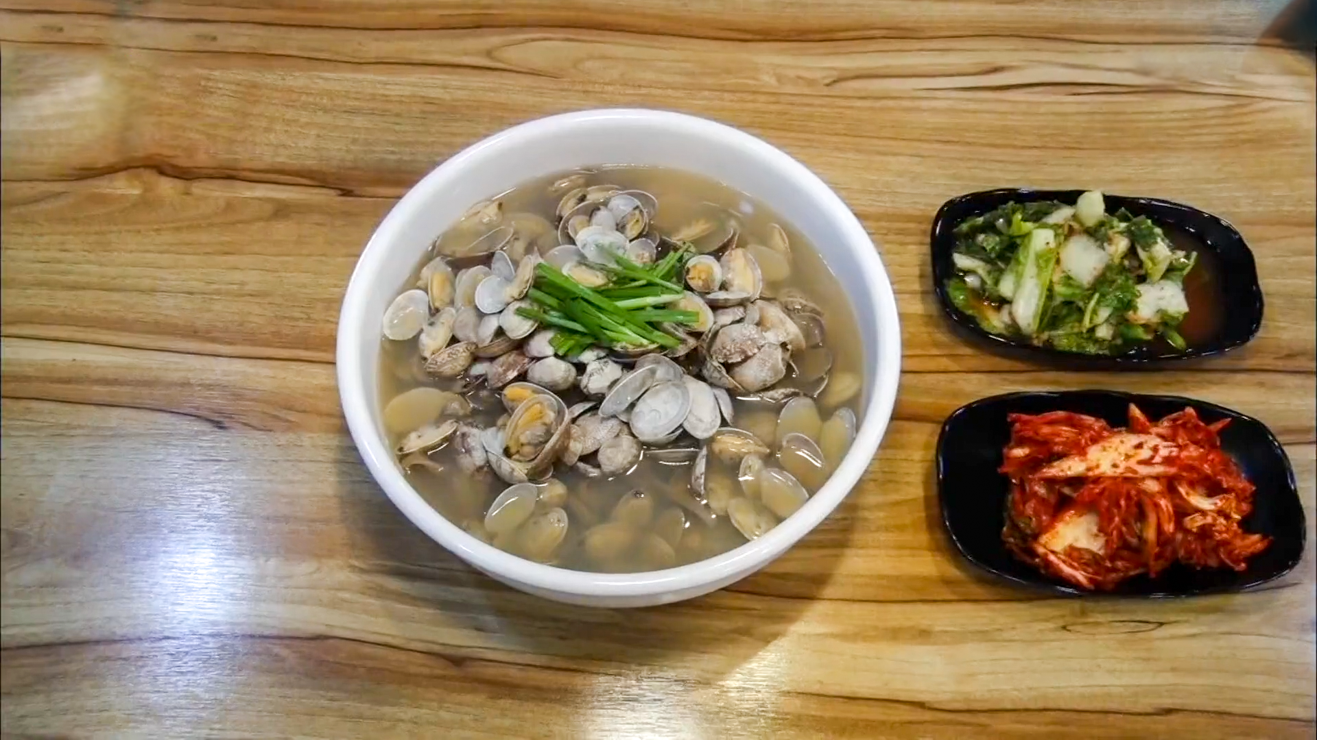 큼지막한 대접에 바지락이 아주 푸짐하게 나옵니다.