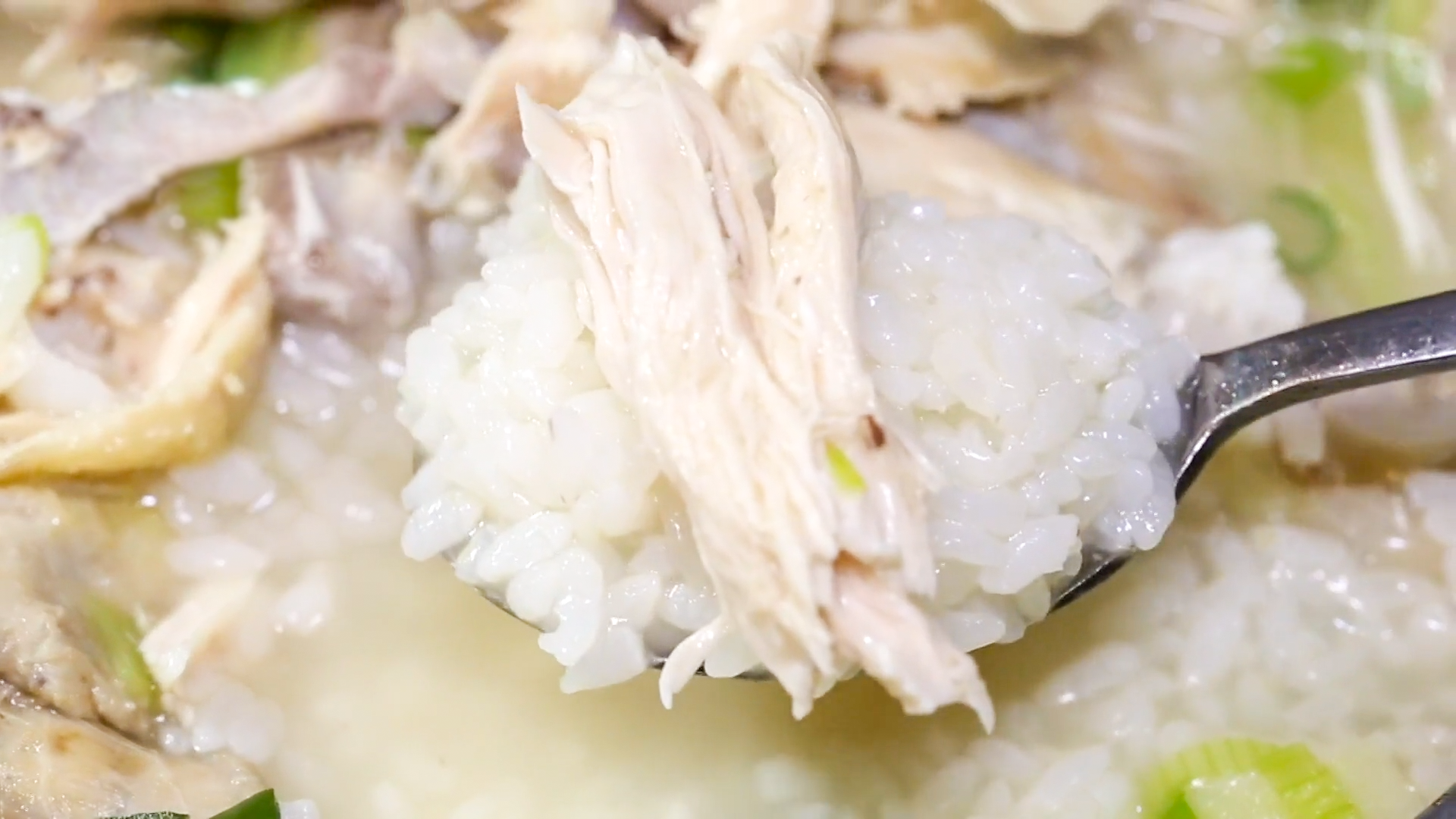 이 집의 대표 메뉴 닭곰탕입니다. 닭고기 반마리가 푸짐하게 들어가 있습니다.